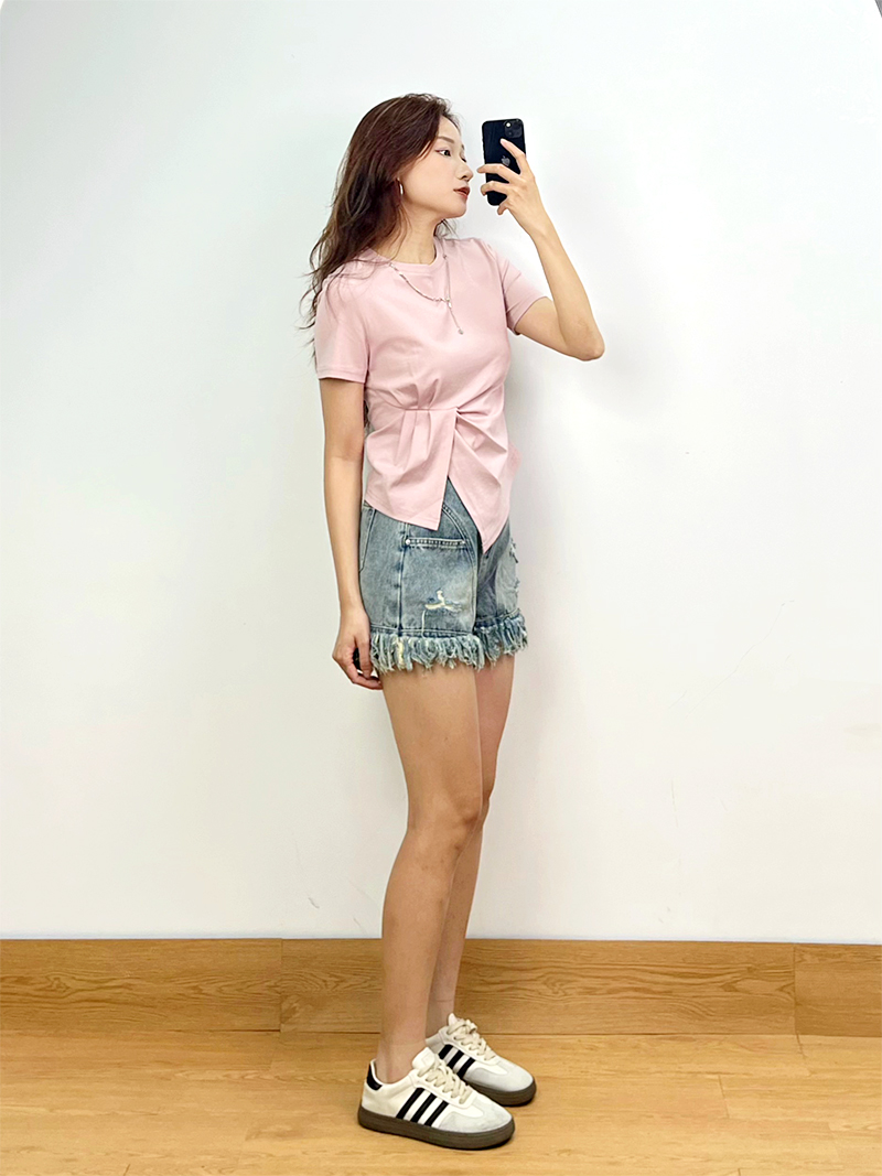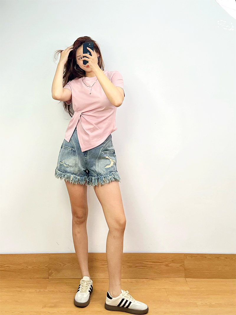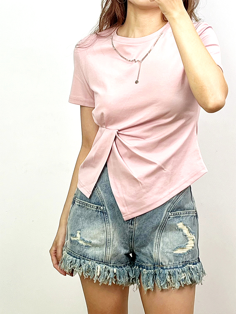 P&X设计师女装不规则纯色显瘦修身百搭短款T恤824202538B 粉色