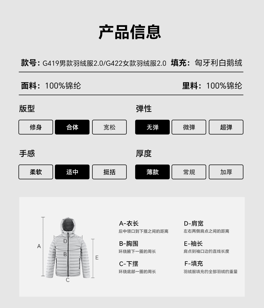 天石鹅铠甲2.0800蓬白鹅绒羽绒服男士短款连帽轻量营地排骨服G419/422 (2.0新款)