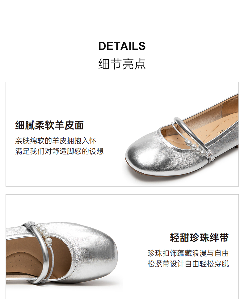 千百度珍珠带羊皮玛丽珍鞋女芭蕾鞋小香风晚晚单鞋A25160610