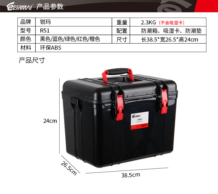 中号防潮箱(防潮箱+电子除湿卡+内胆包+肩带+密码锁)