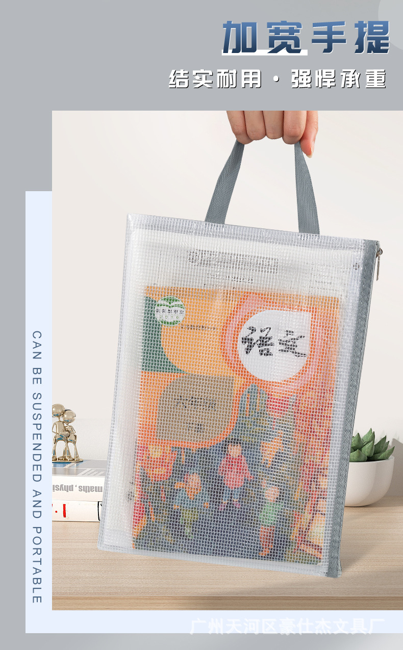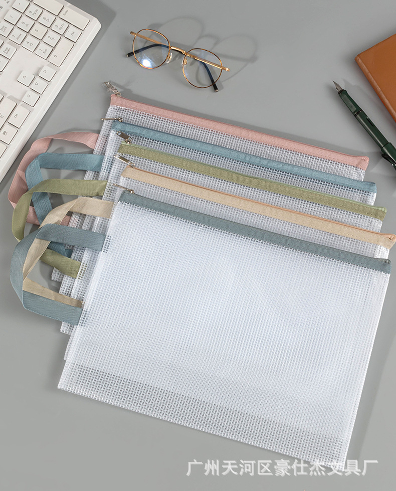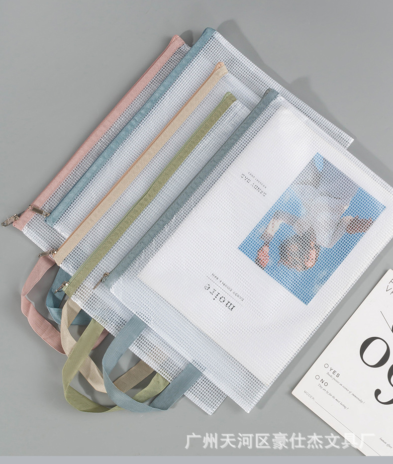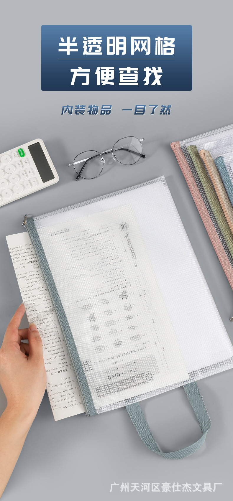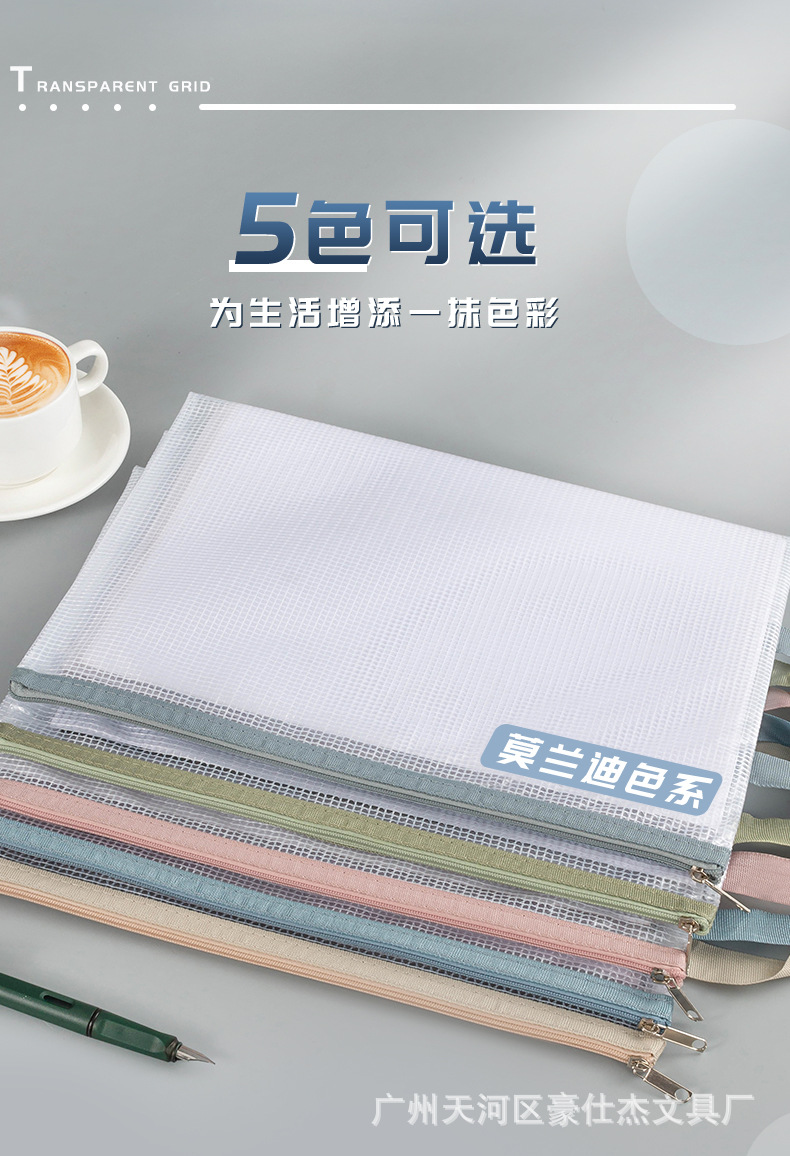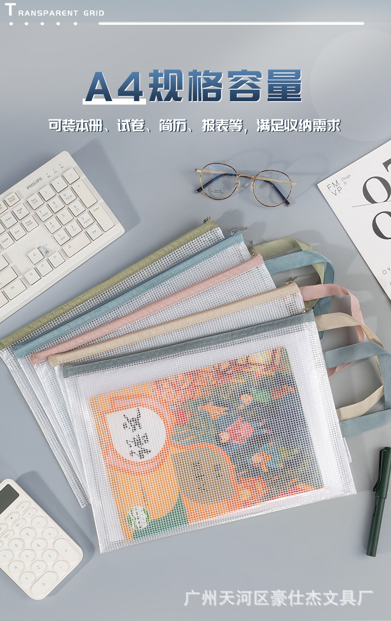 A4防水手提网格拉链袋学生试卷收纳袋资料分类袋透明文件袋可印字