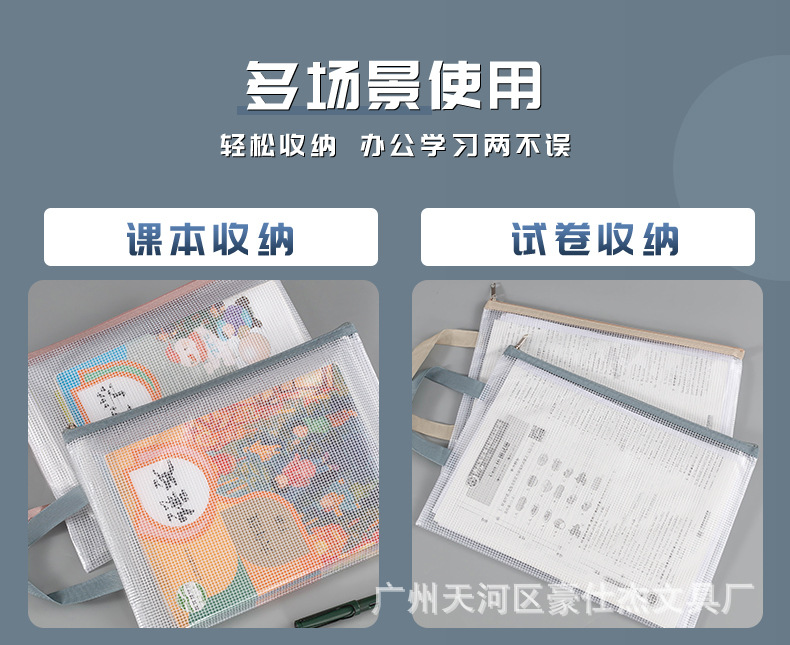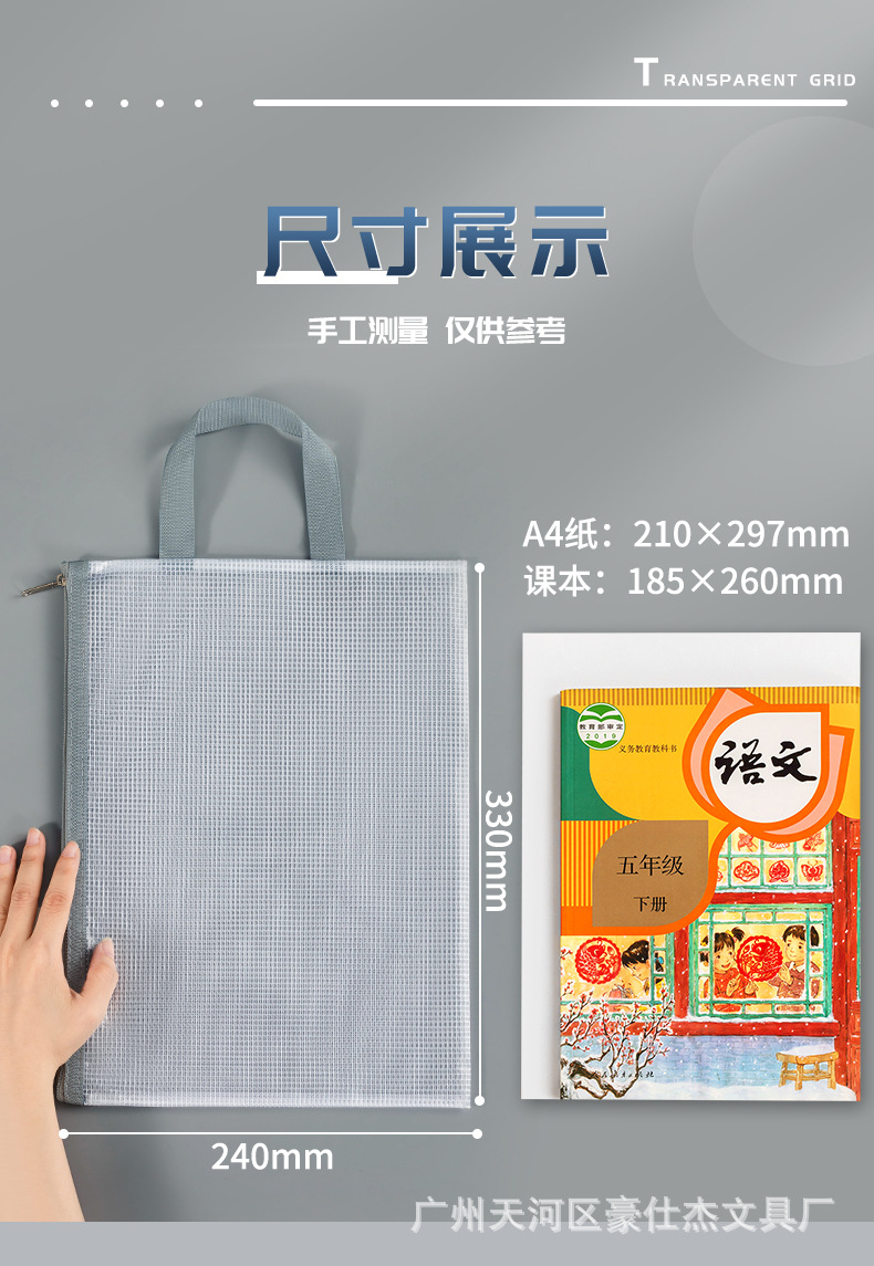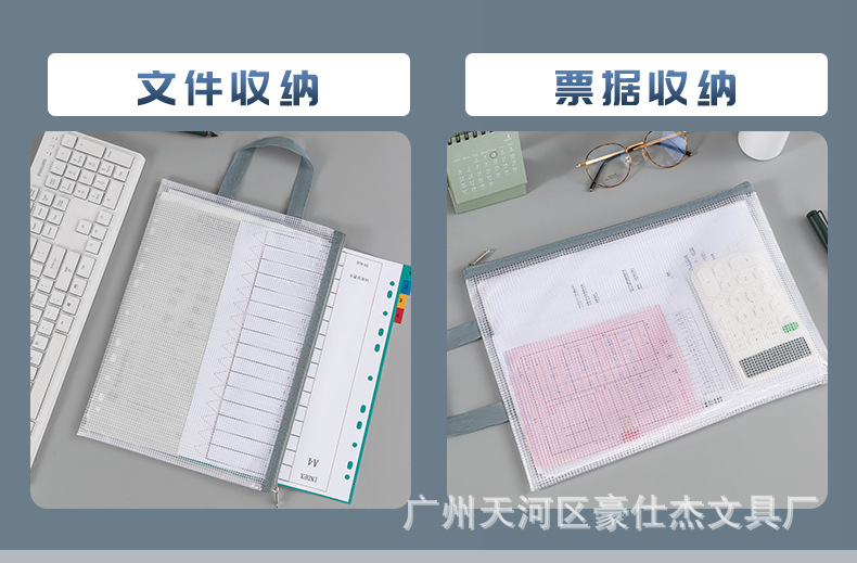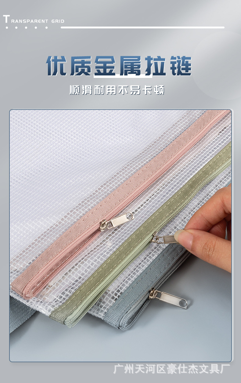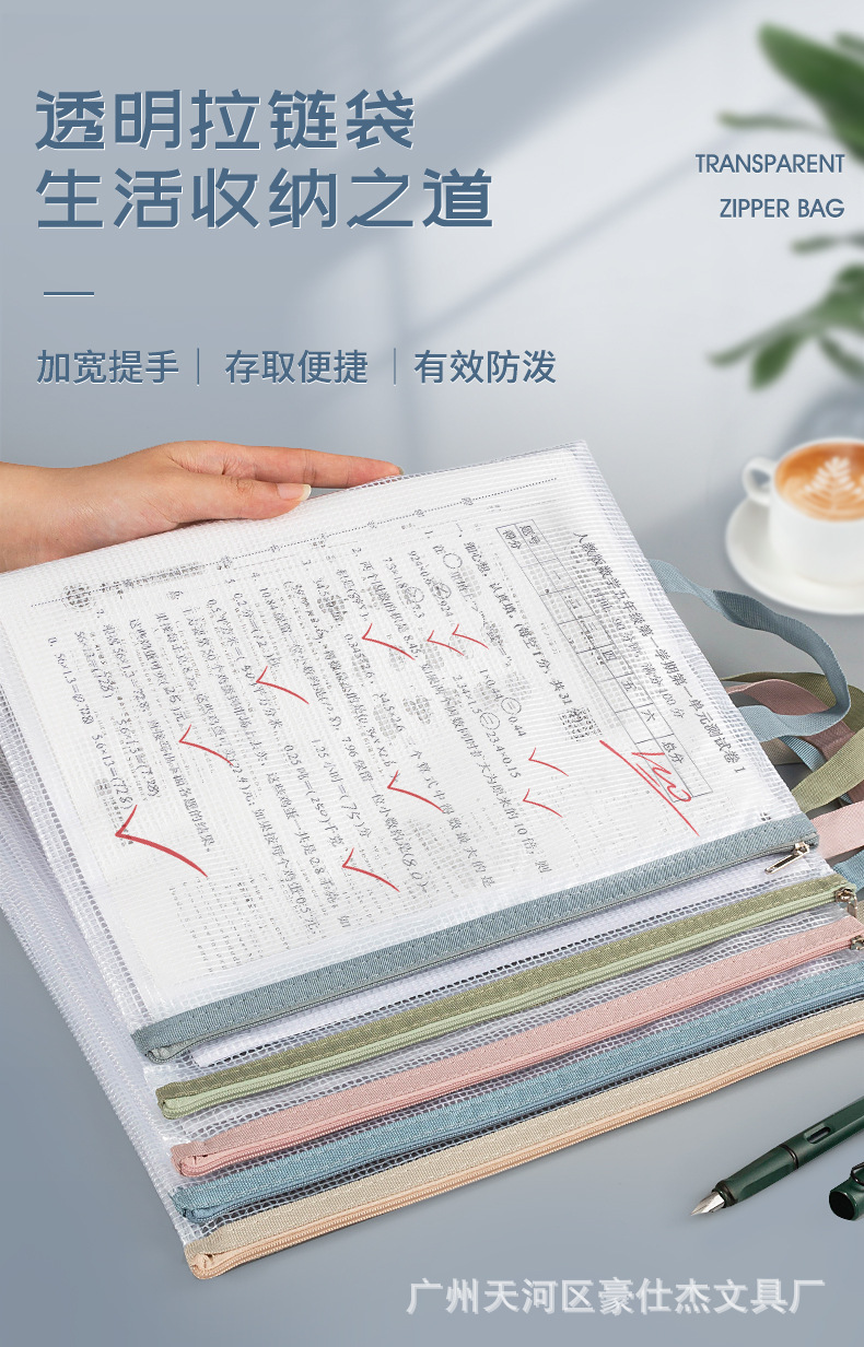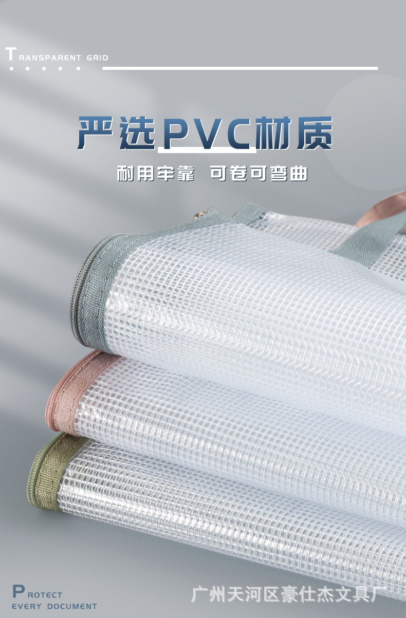 A4防水手提网格拉链袋学生试卷收纳袋资料分类袋透明文件袋可印字