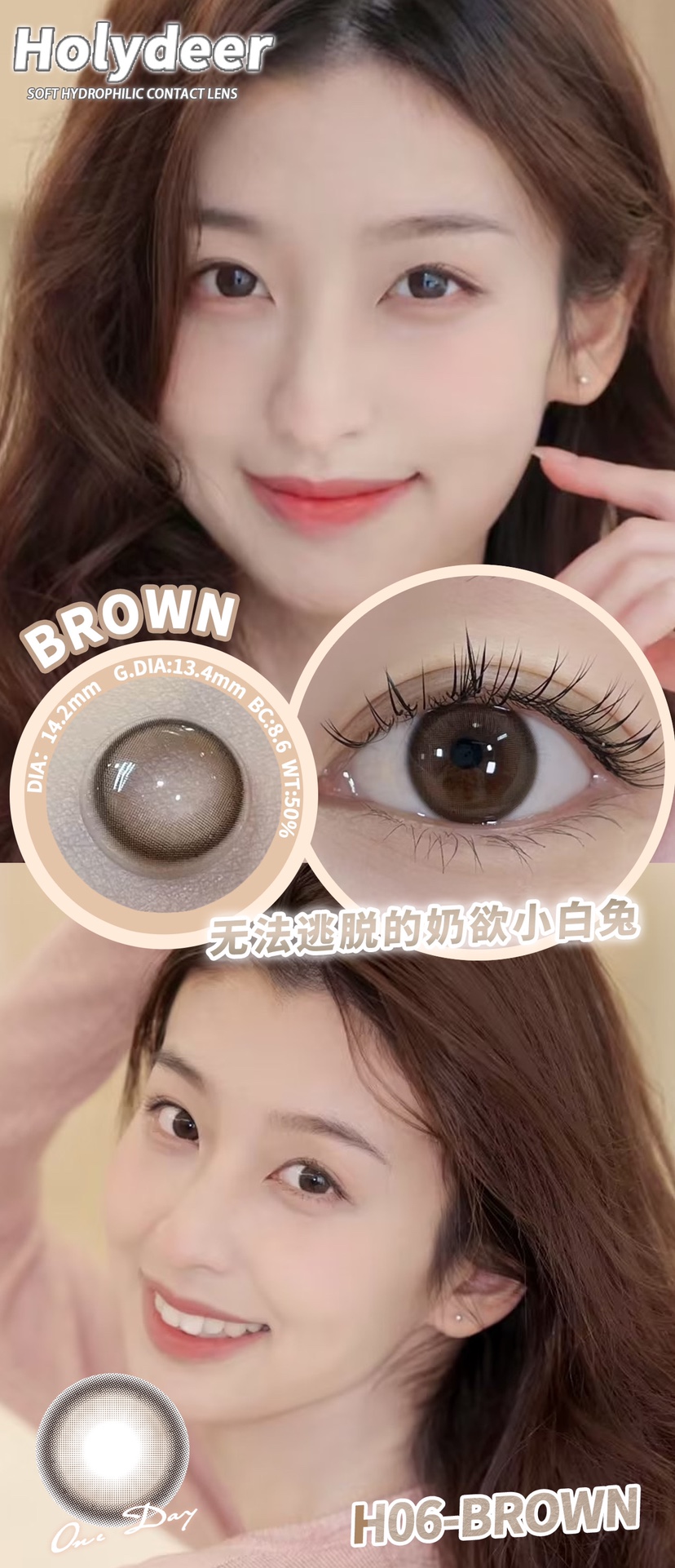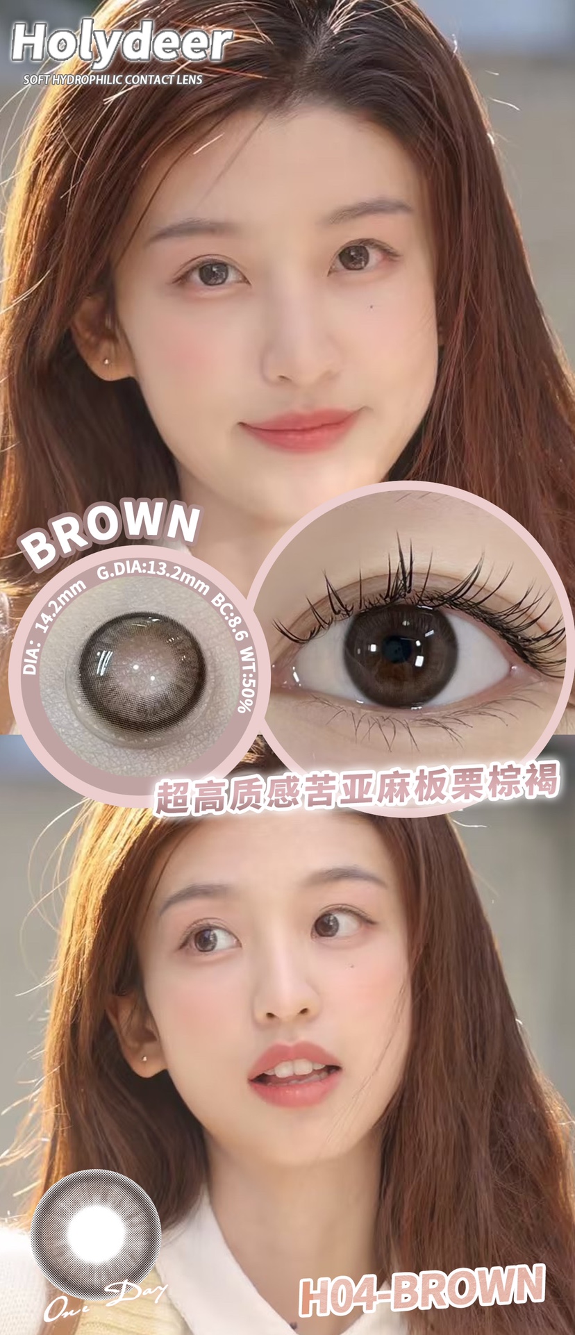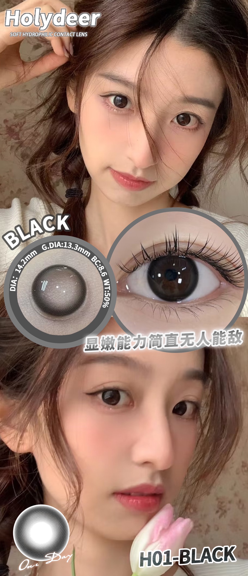 holydeer日抛 H01/H02/H03/H04/H05/H06 黑棕灰蓝 14.2mm 非离子 日抛无售后