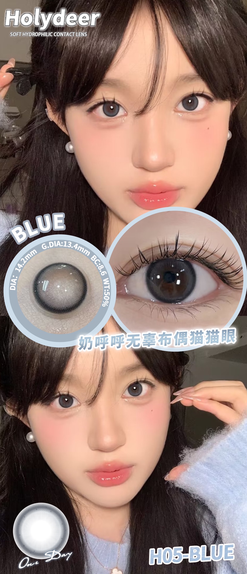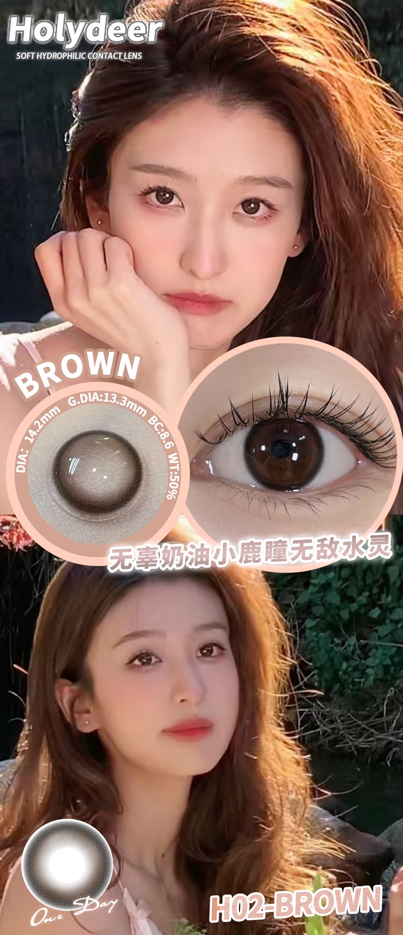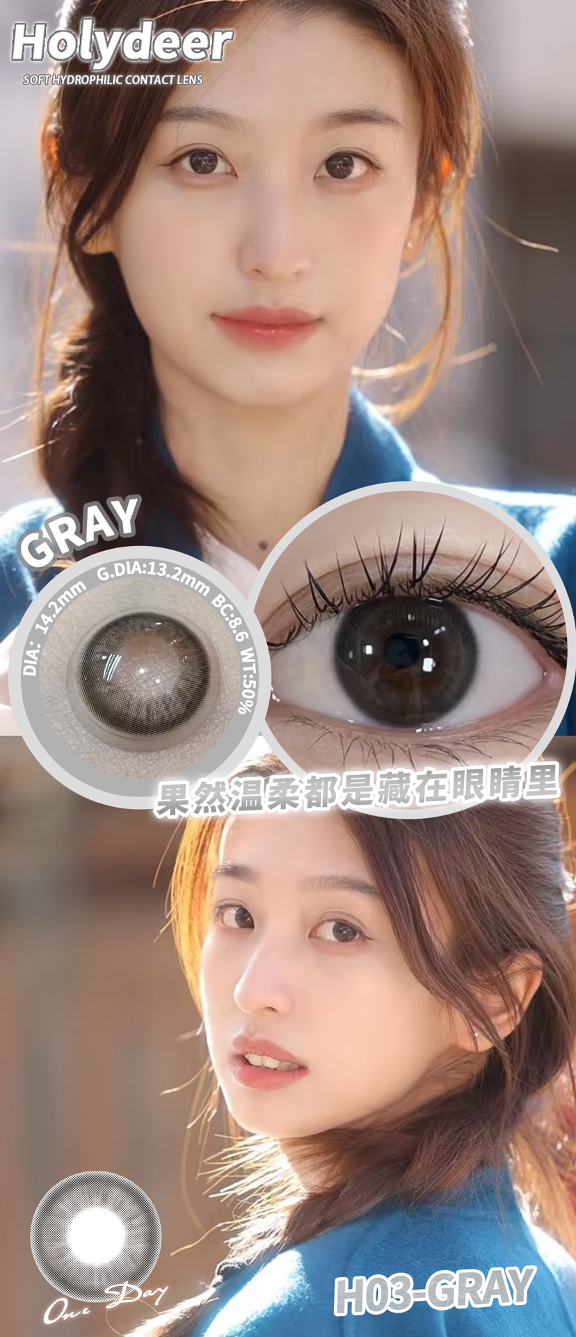 holydeer日抛 H01/H02/H03/H04/H05/H06 黑棕灰蓝 14.2mm 非离子 日抛无售后