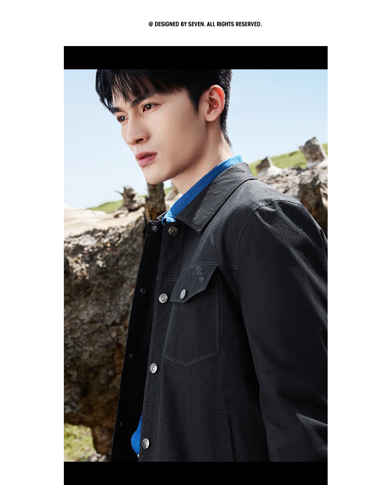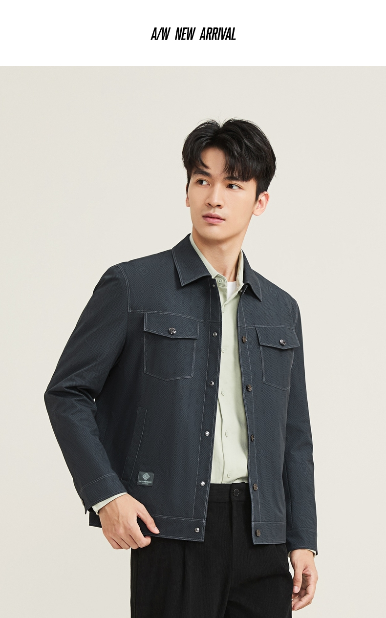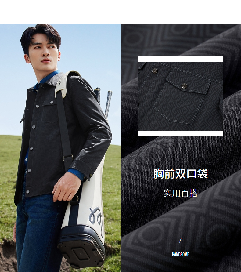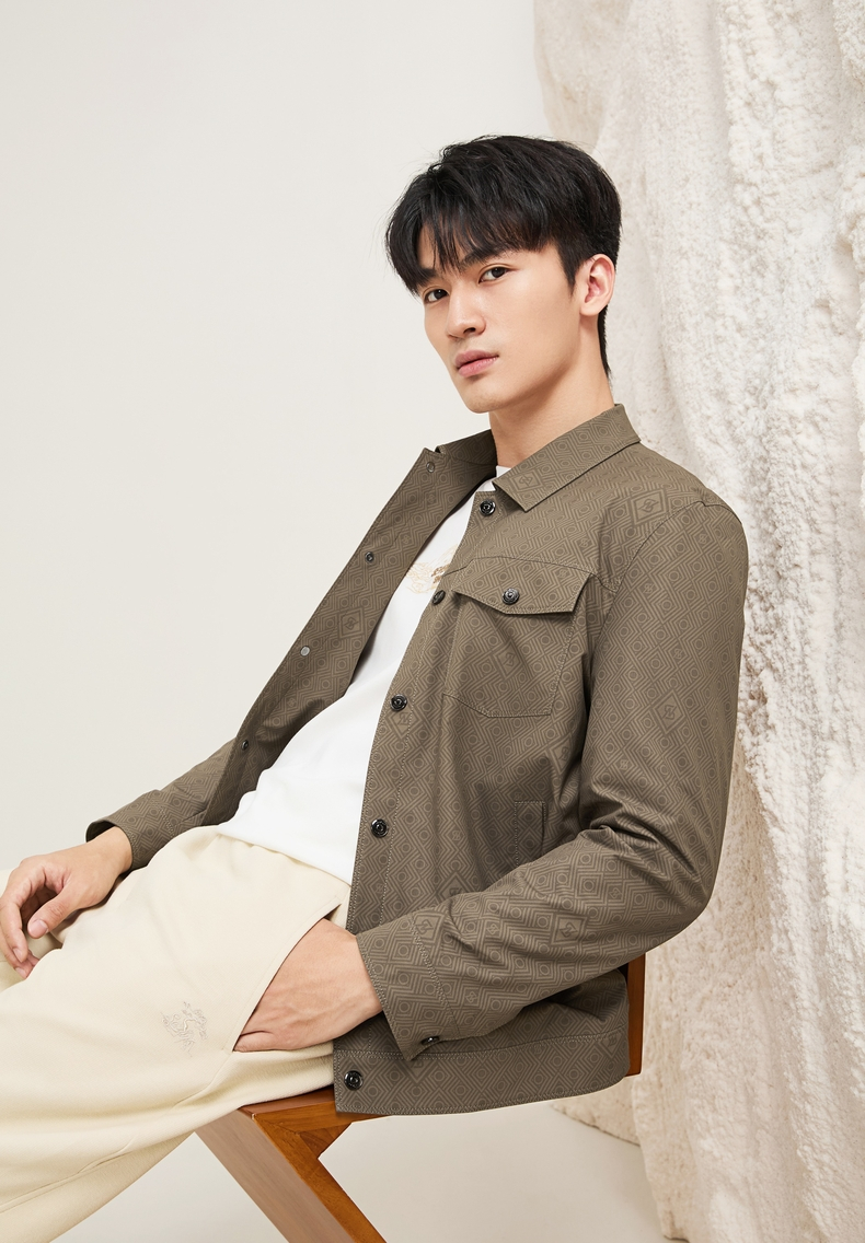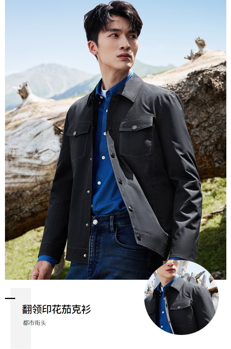 【工装满印茄克】柒牌男装夹克2025秋季新款时尚印花休闲翻领茄克129K70120
