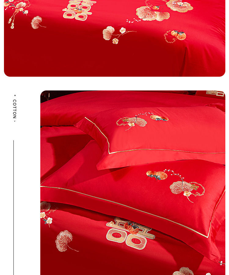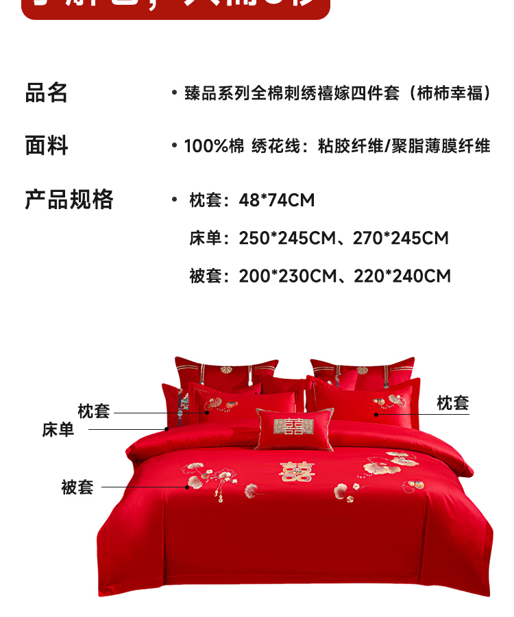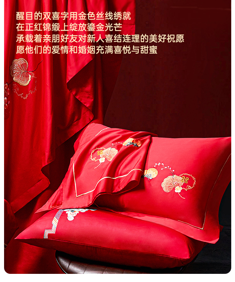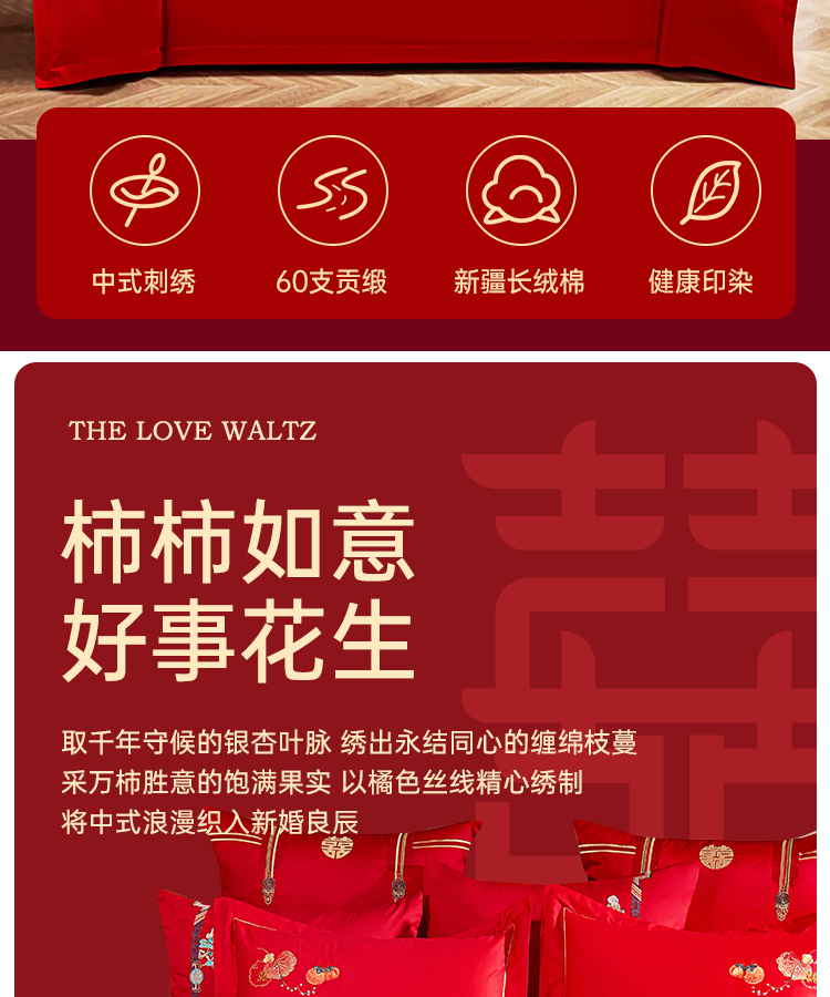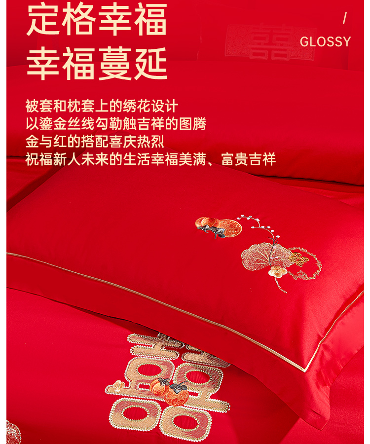 臻品系列全棉刺绣禧嫁四件套(柿柿幸福)