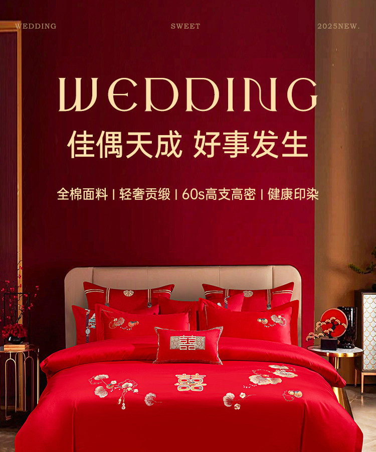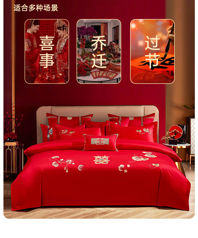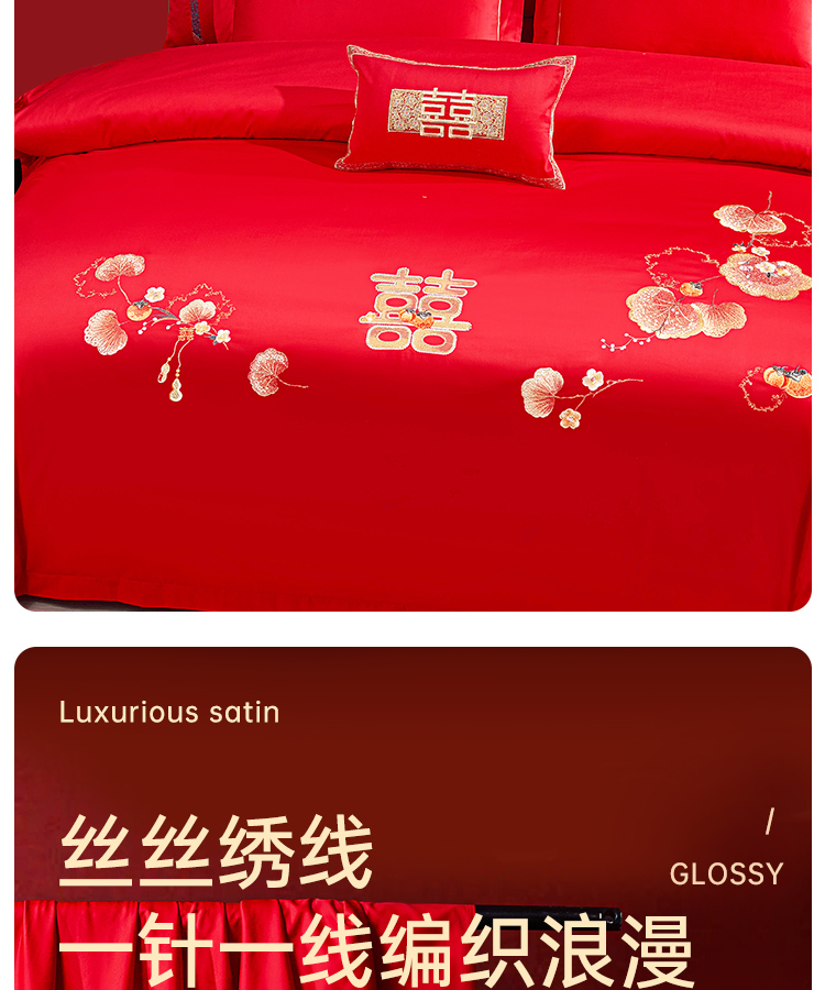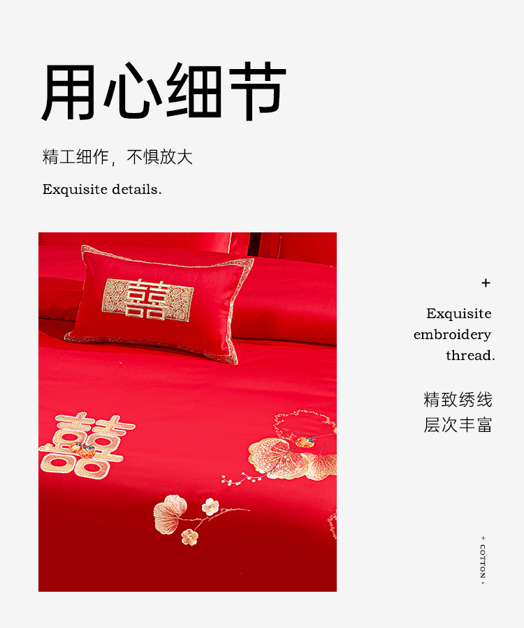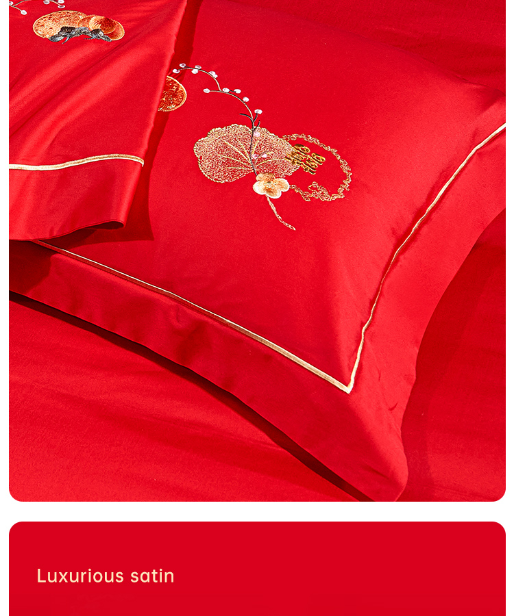 臻品系列全棉刺绣禧嫁四件套(柿柿幸福)