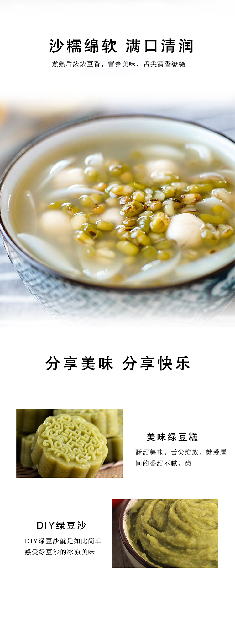 【产品规格】粉沙绿豆:3斤装(500g*3袋),5斤装(500g*5袋)。