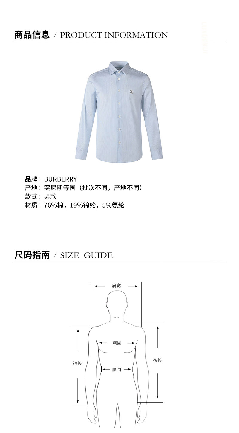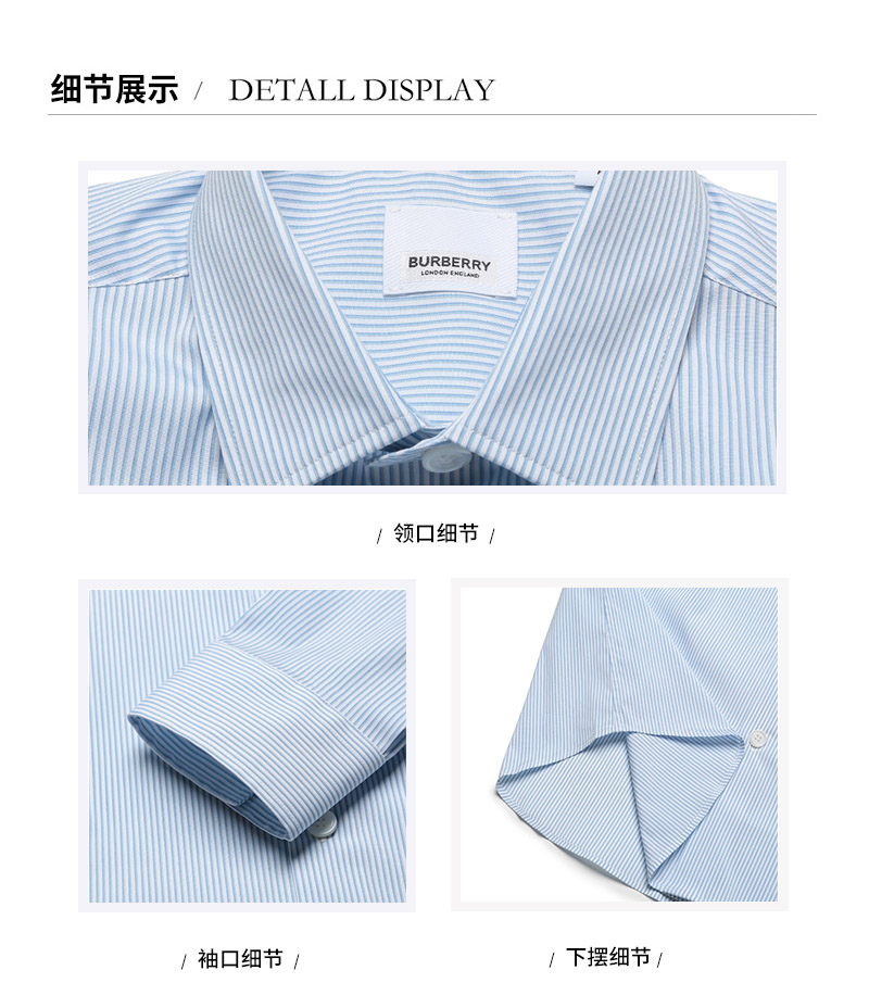 BURBERRY/博柏利【21秋冬新款】男士长袖衬衫 男款棉质长袖衬衫条纹徽标饰扣 80427731