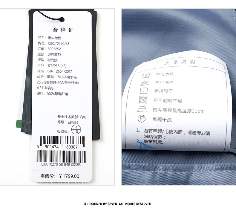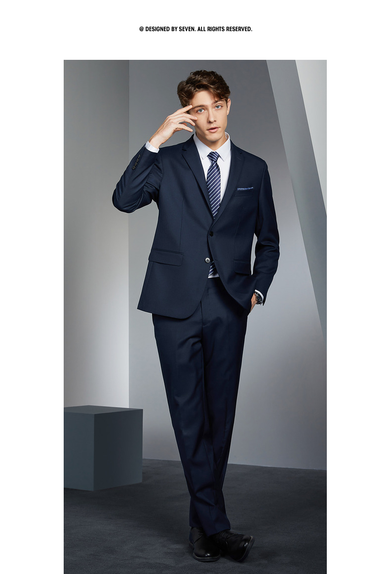 【含羊毛/莱赛尔】柒牌西装男外套春夏季新款商务休闲平驳领西服 126C70270