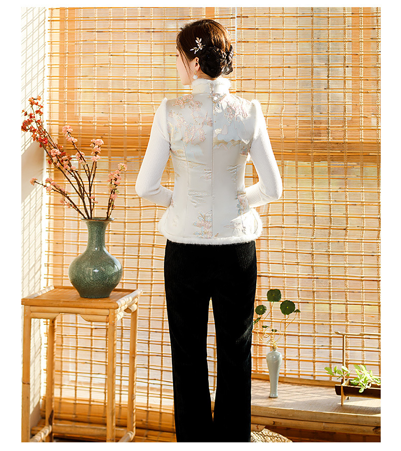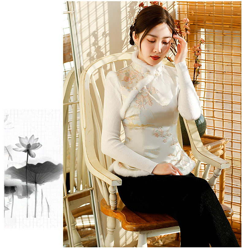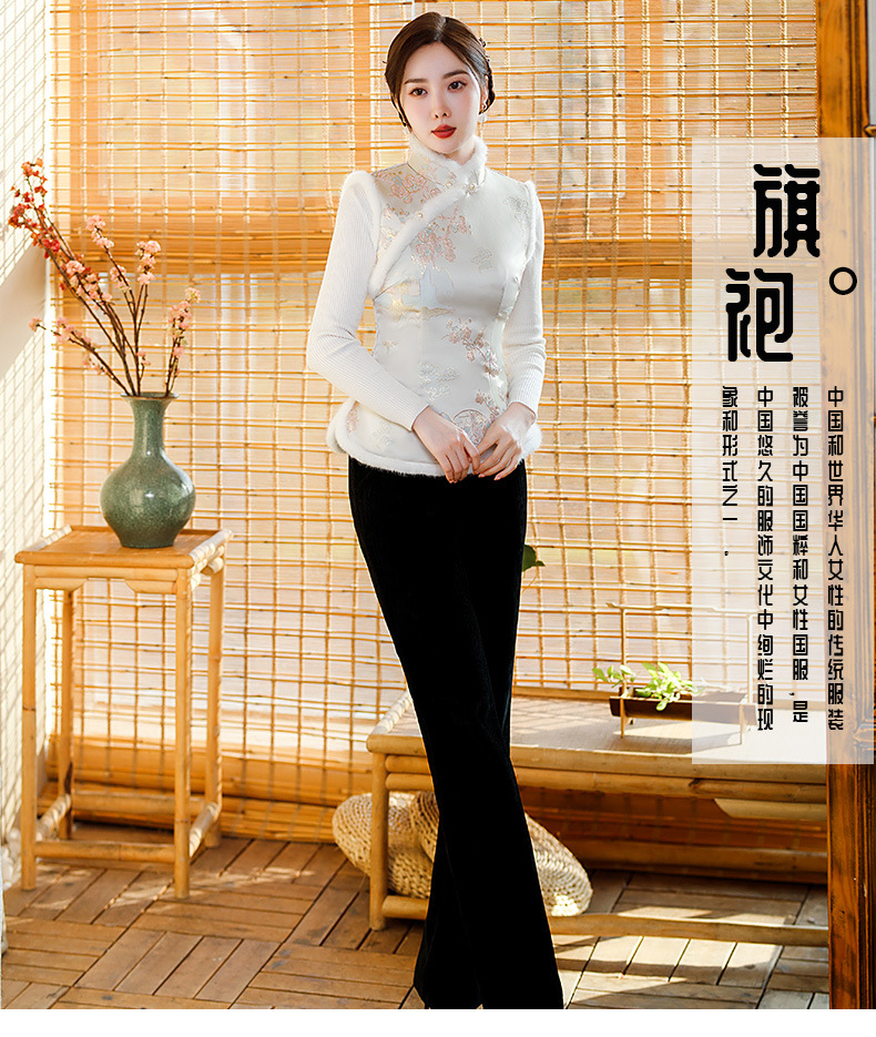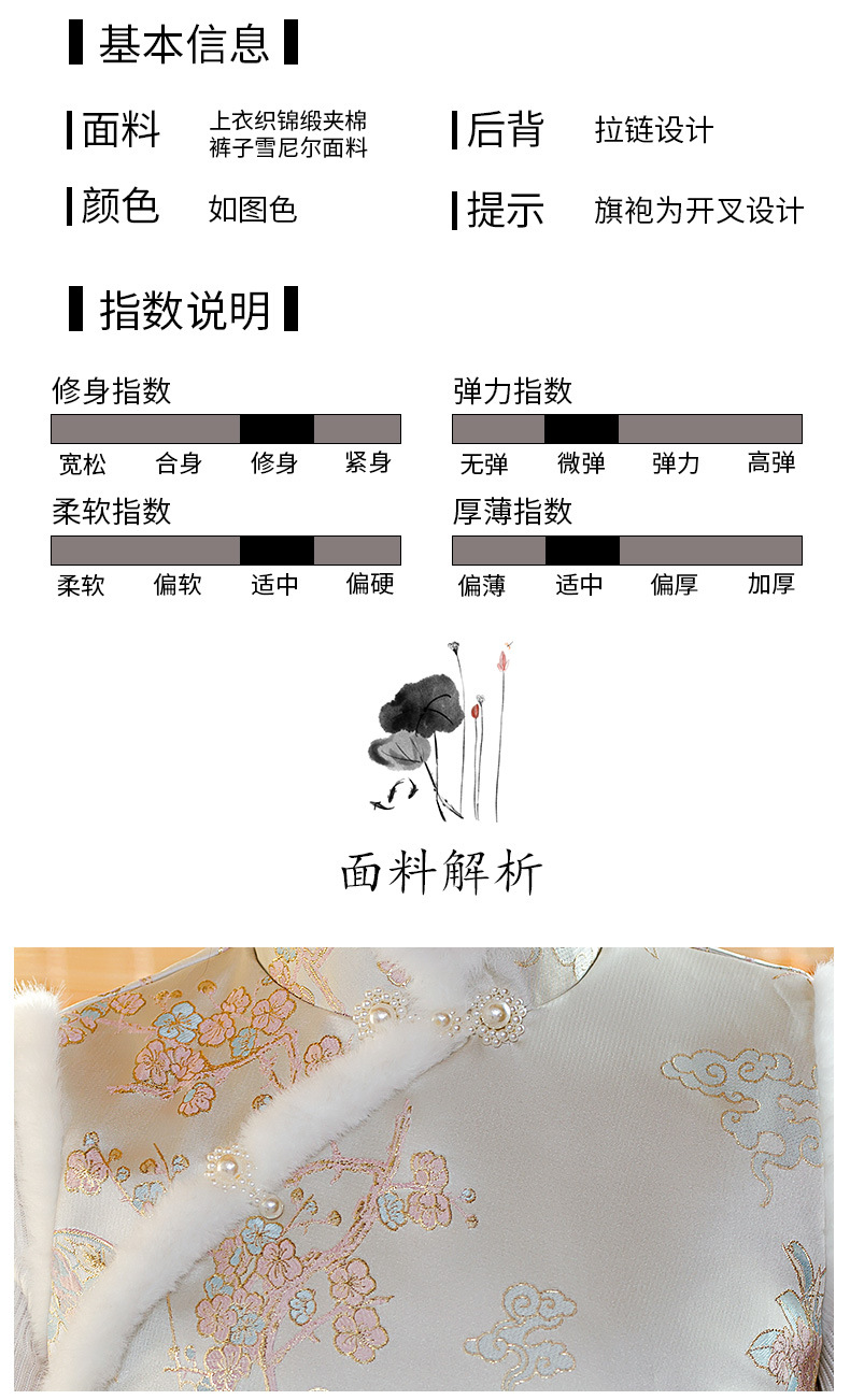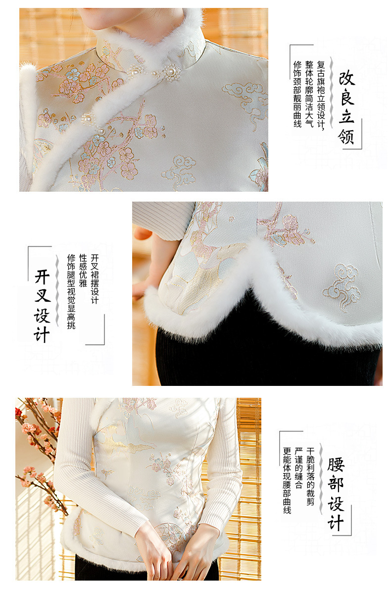 冬款新款,加厚织锦缎夹棉马甲旗袍年轻气质两件套装GSJ-141