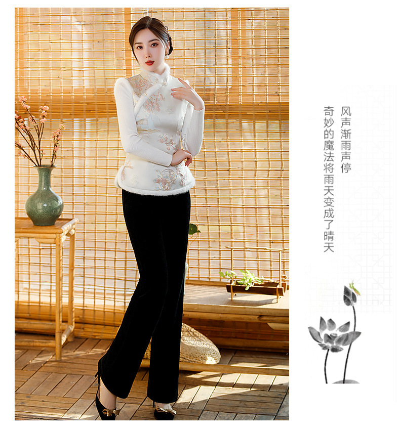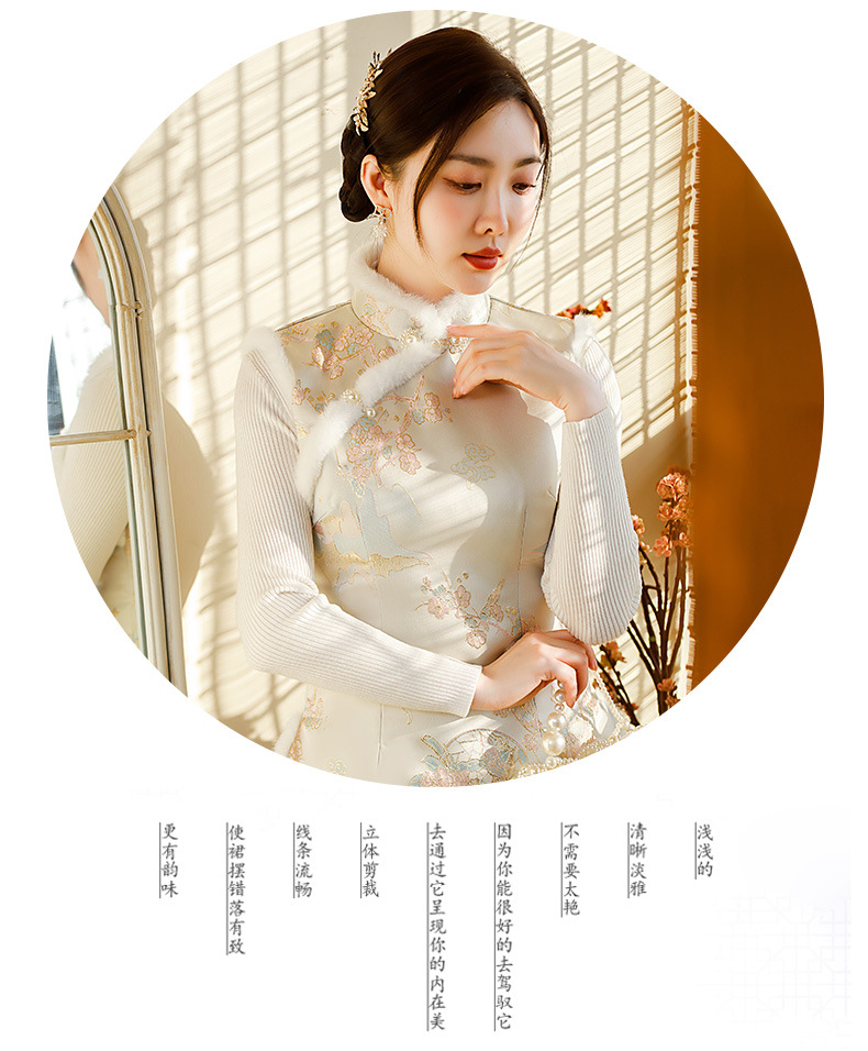 曼丽绒长款温婉少女,毛茸茸日常文艺风气质旗袍MLS-6821