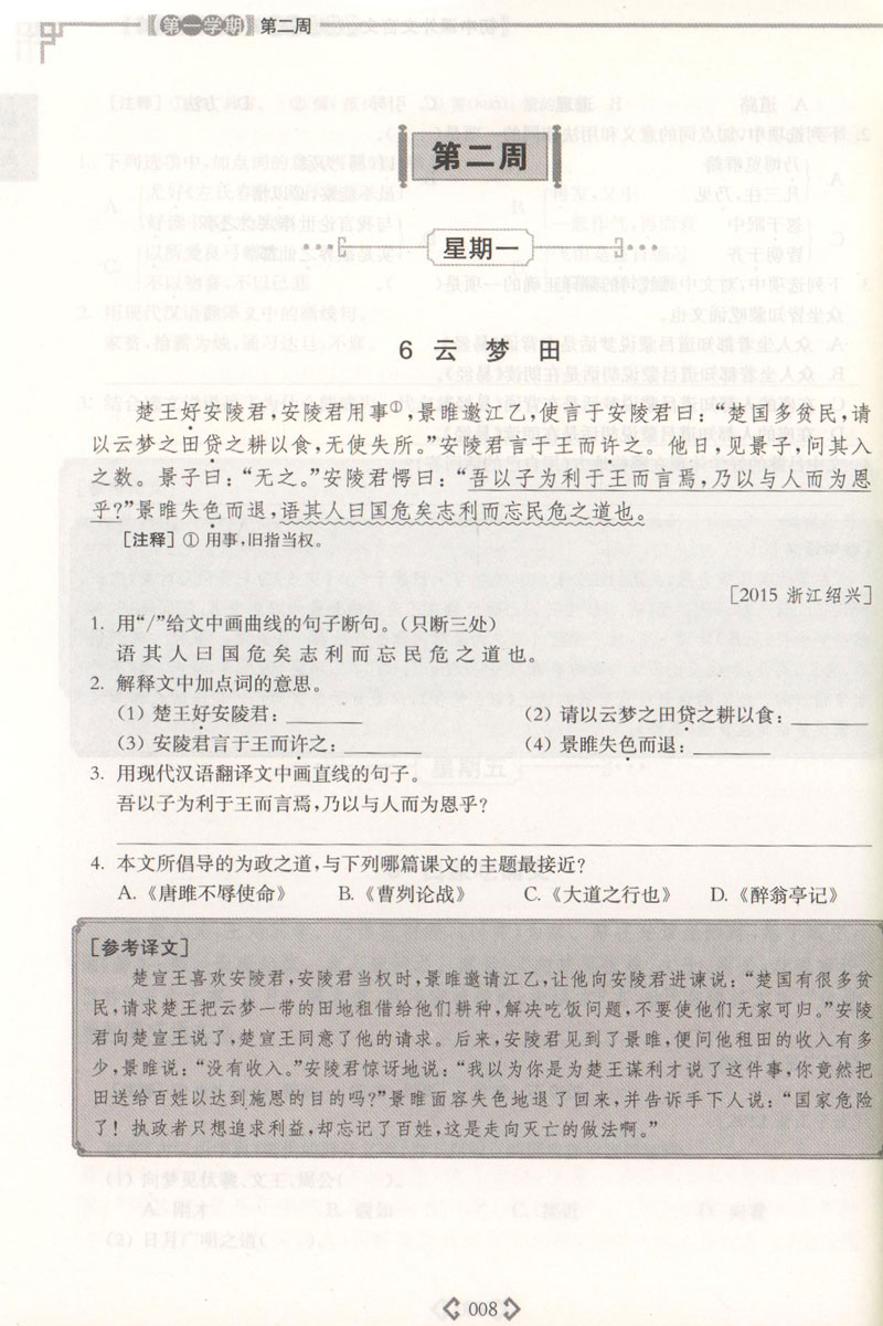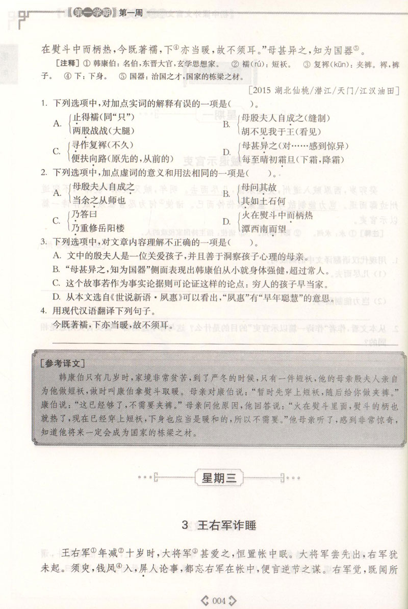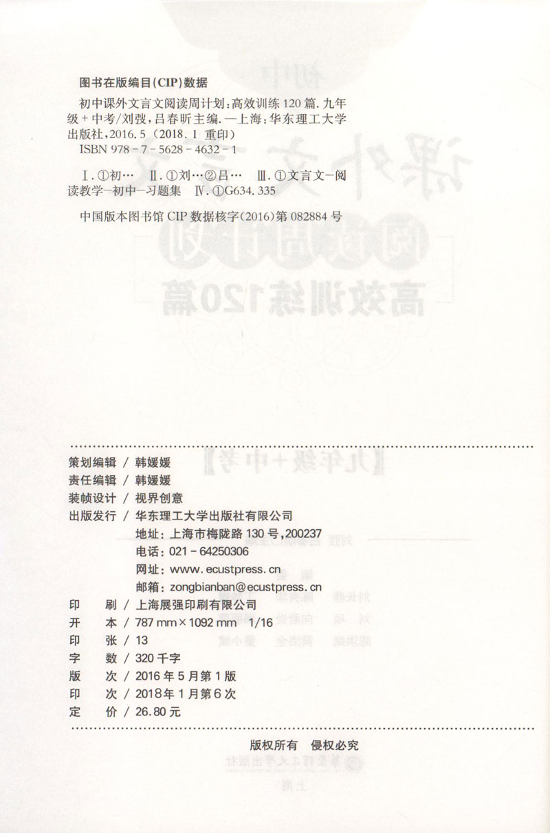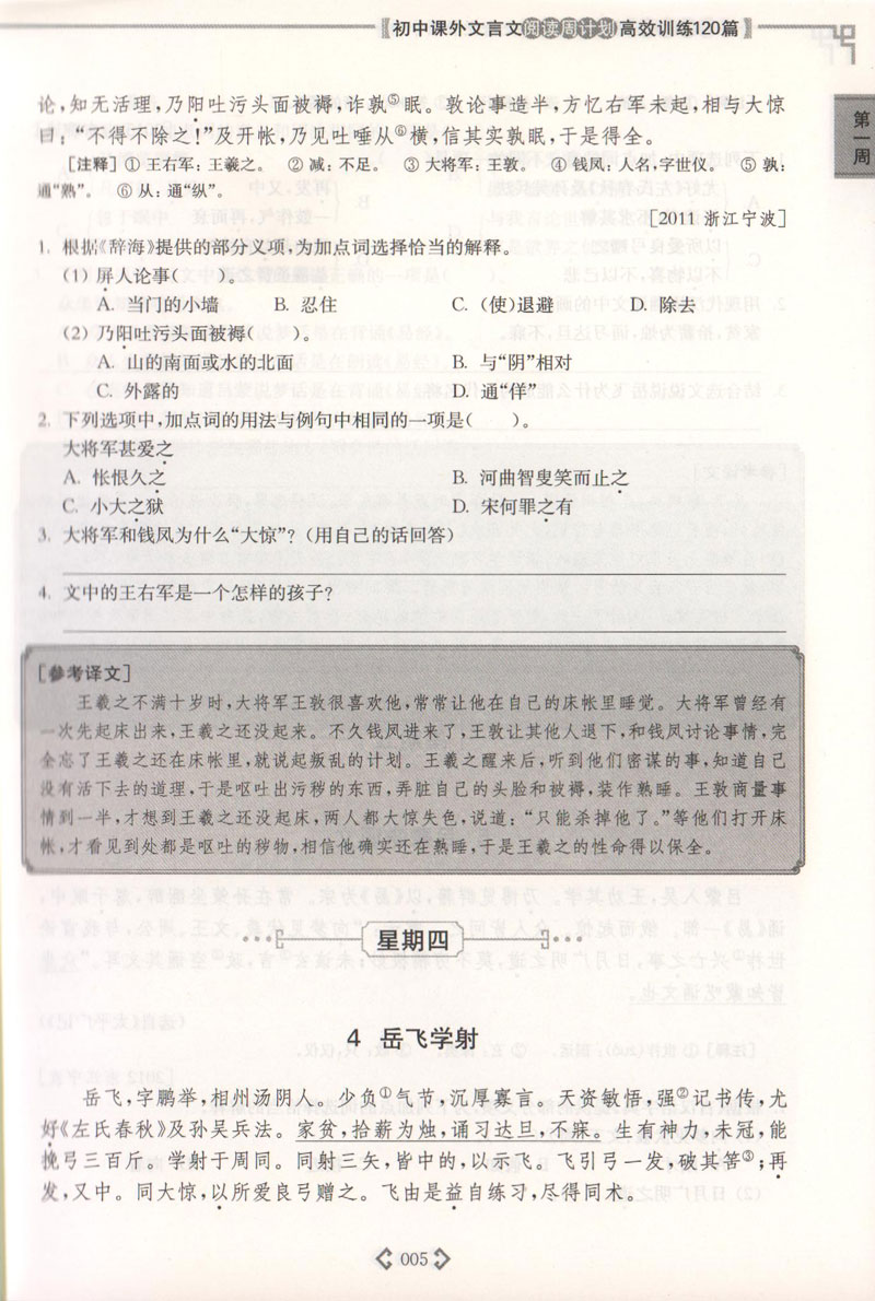 初中课外文言文阅读周计划高效训练120篇 七八九年级 789年级 全套3册 华东理工大学出版社 初中文言文古文阅读辅导