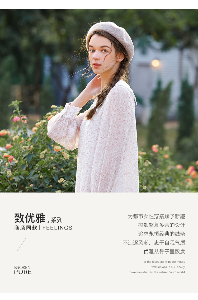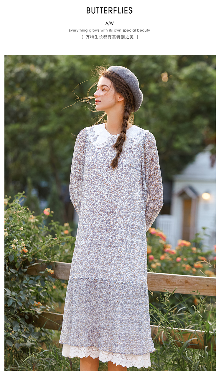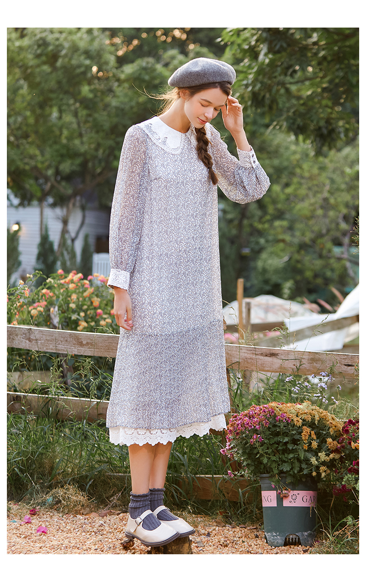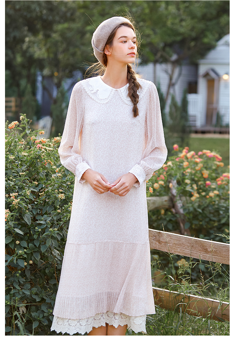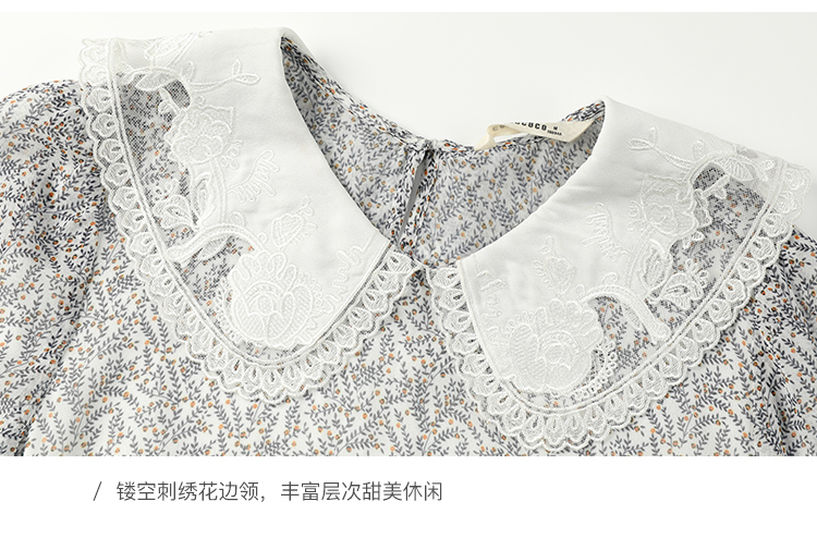 Famecoco范可儿温柔甜美连衣裙女款娃娃领印花裙F221FC001