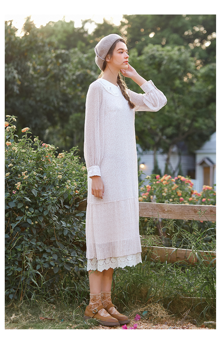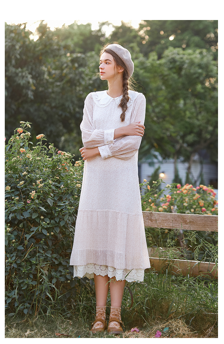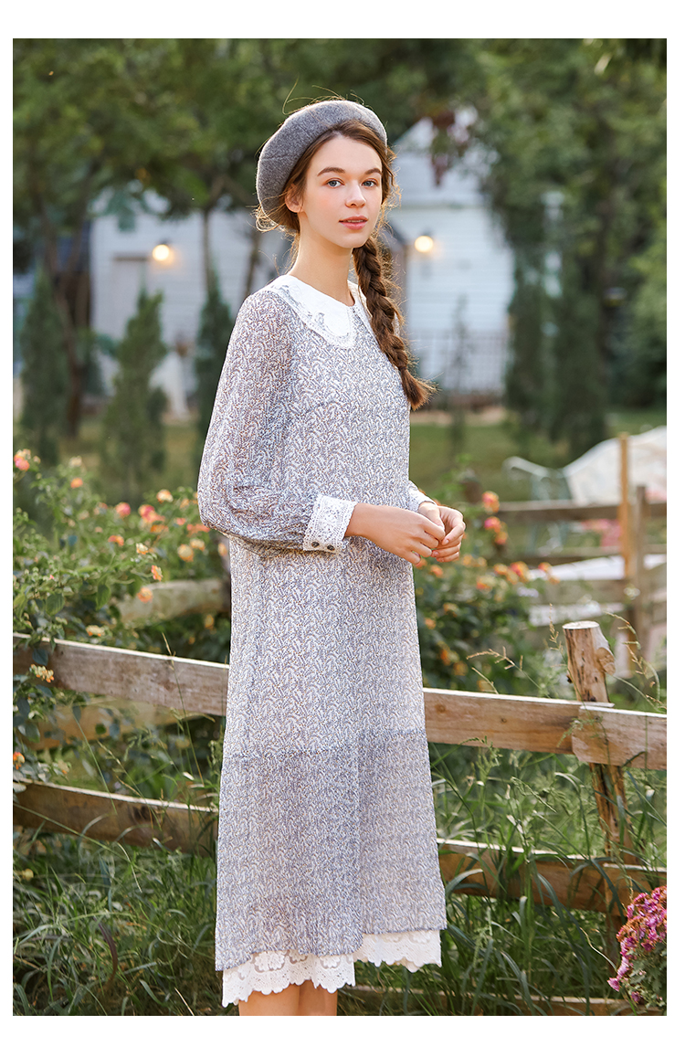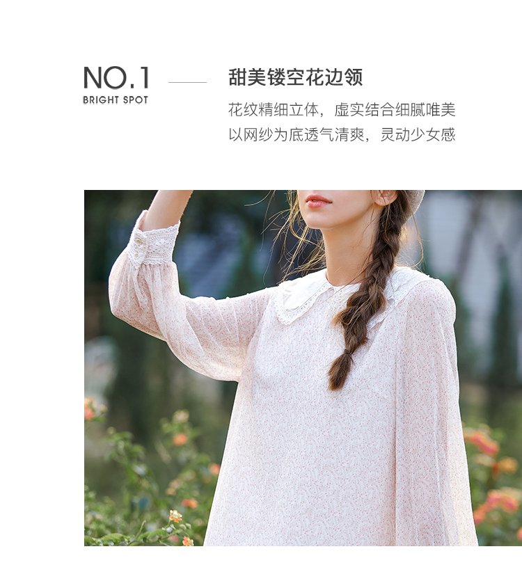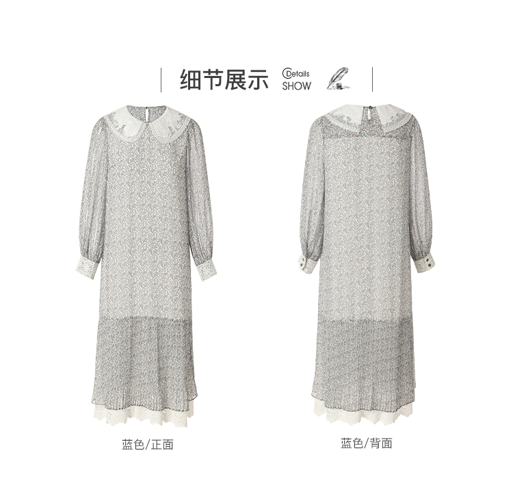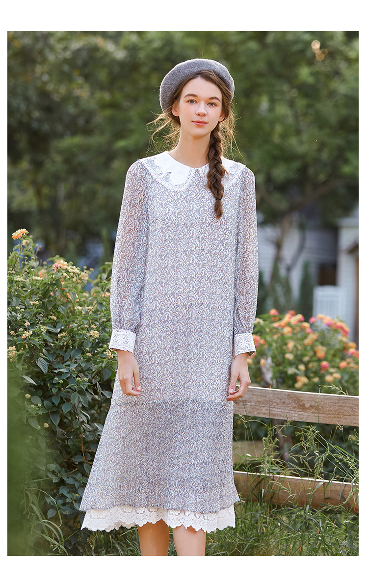 Famecoco范可儿温柔甜美连衣裙女款娃娃领印花裙F221FC001