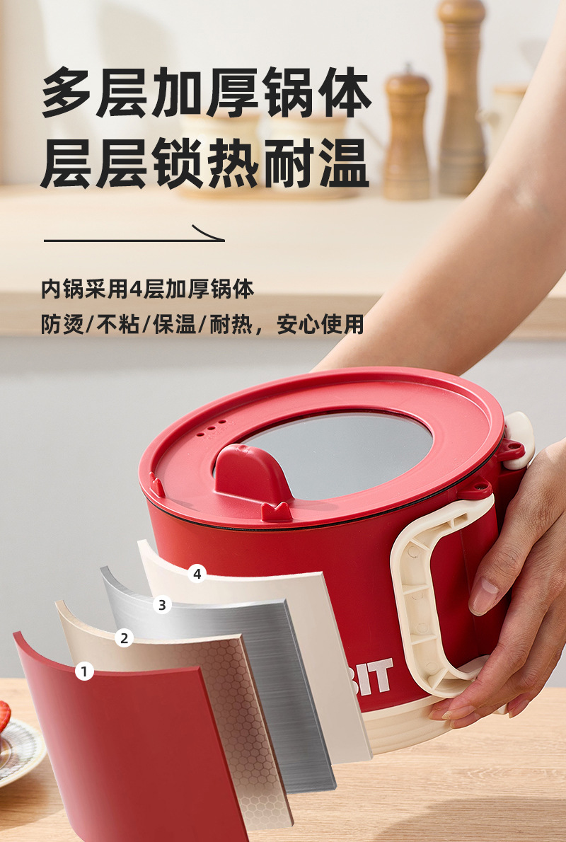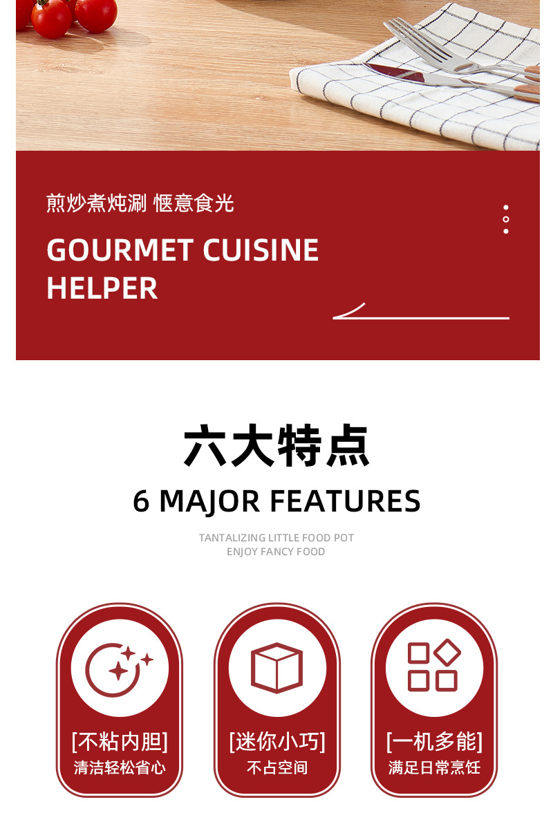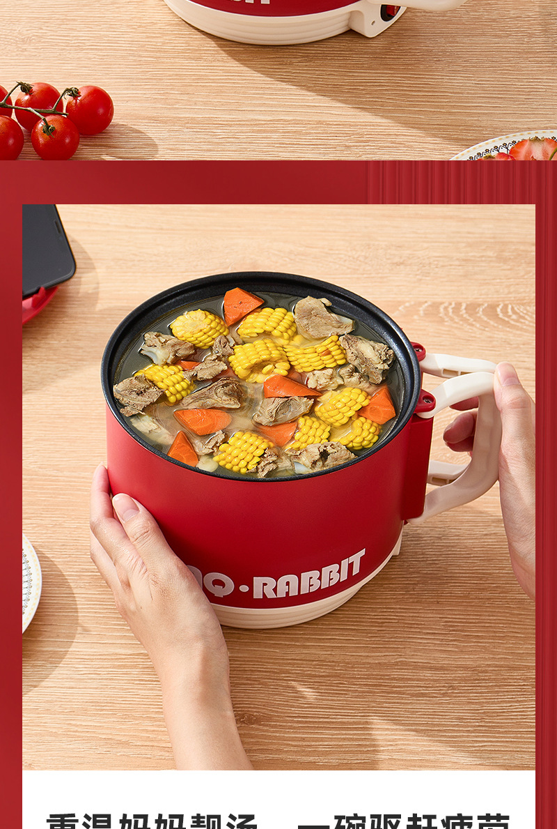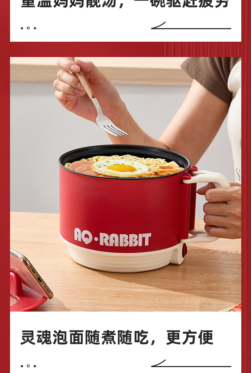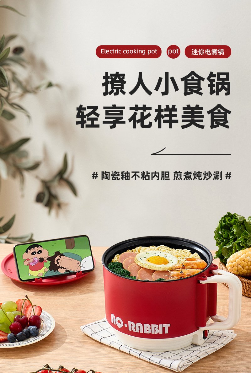 【撩人小食锅!轻享花样美食】折叠电煮锅网红1.8L泡面锅现货110V电火锅便携宿舍小电锅,陶瓷釉不粘内胆,煎煮炖炒涮。ry