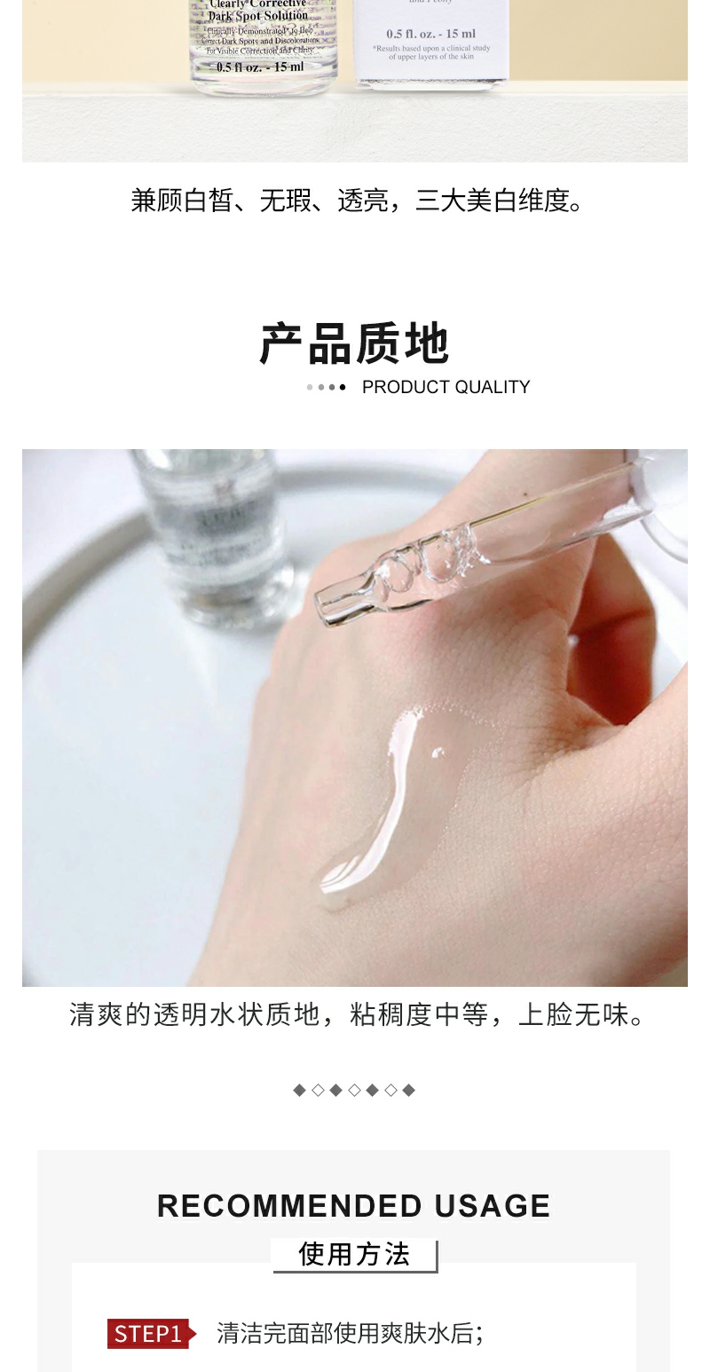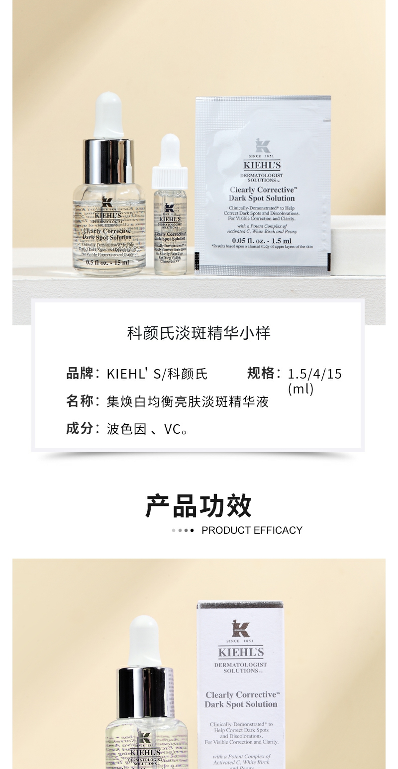【YZ】科颜氏淡斑精华液4ml安白瓶15ml中小样补水保湿淡化痘印美白提亮