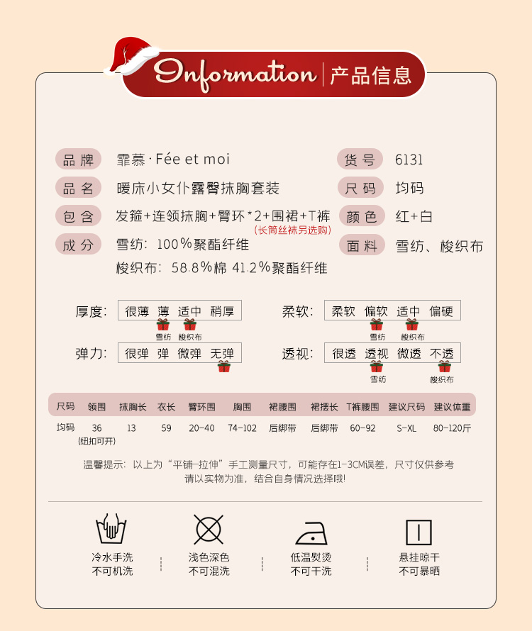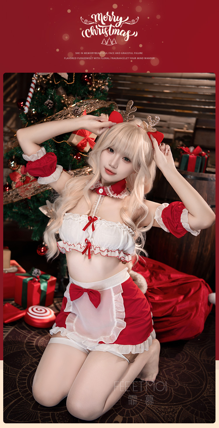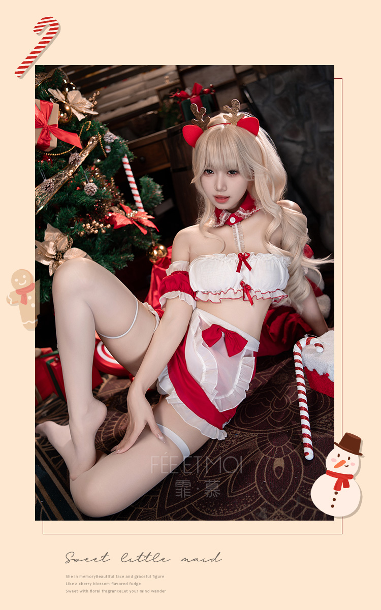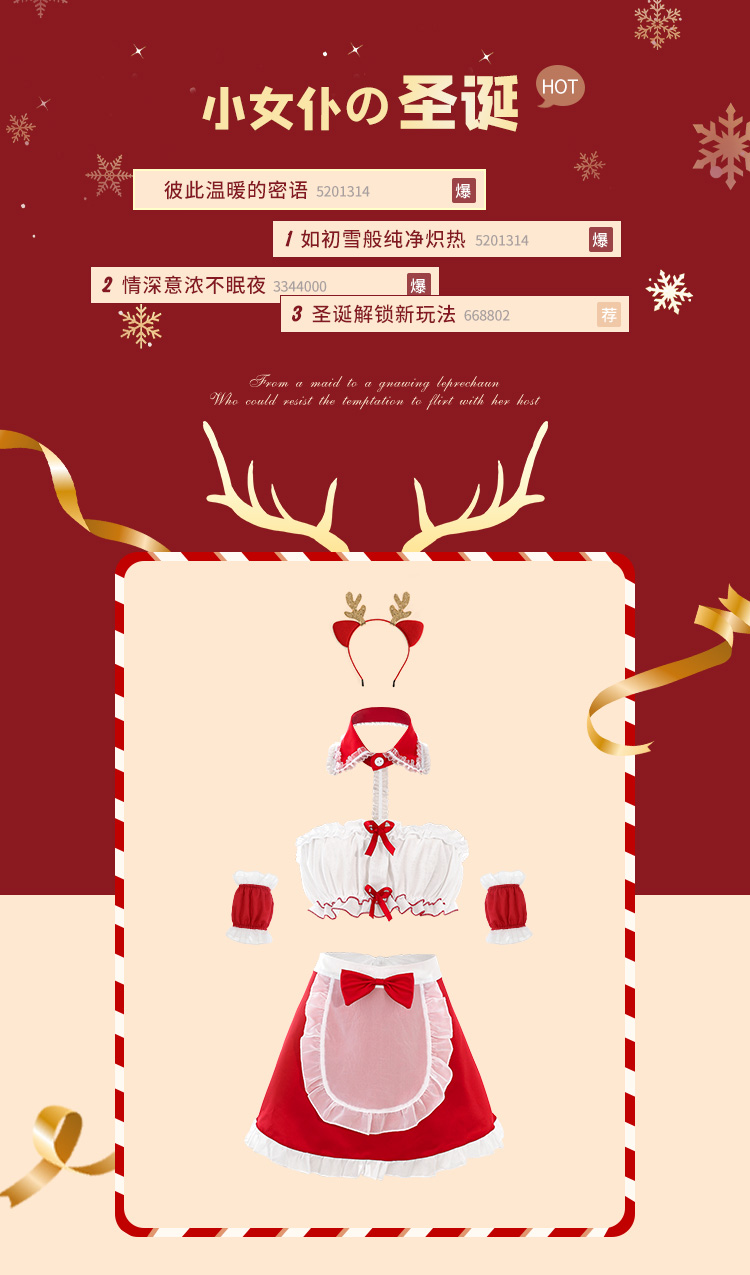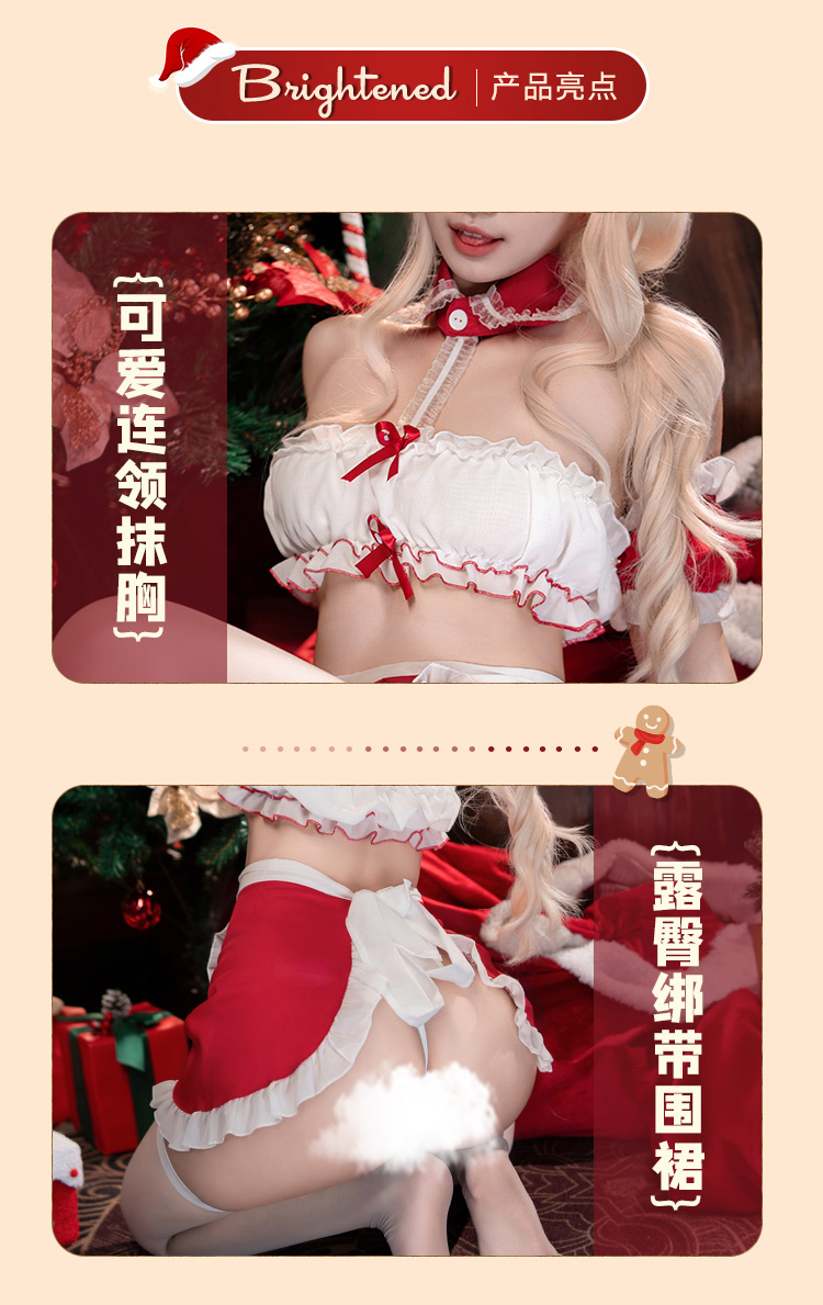 霏慕 圣诞暖床小女仆露臀抹胸套装6131 诱惑情趣内衣性感战袍