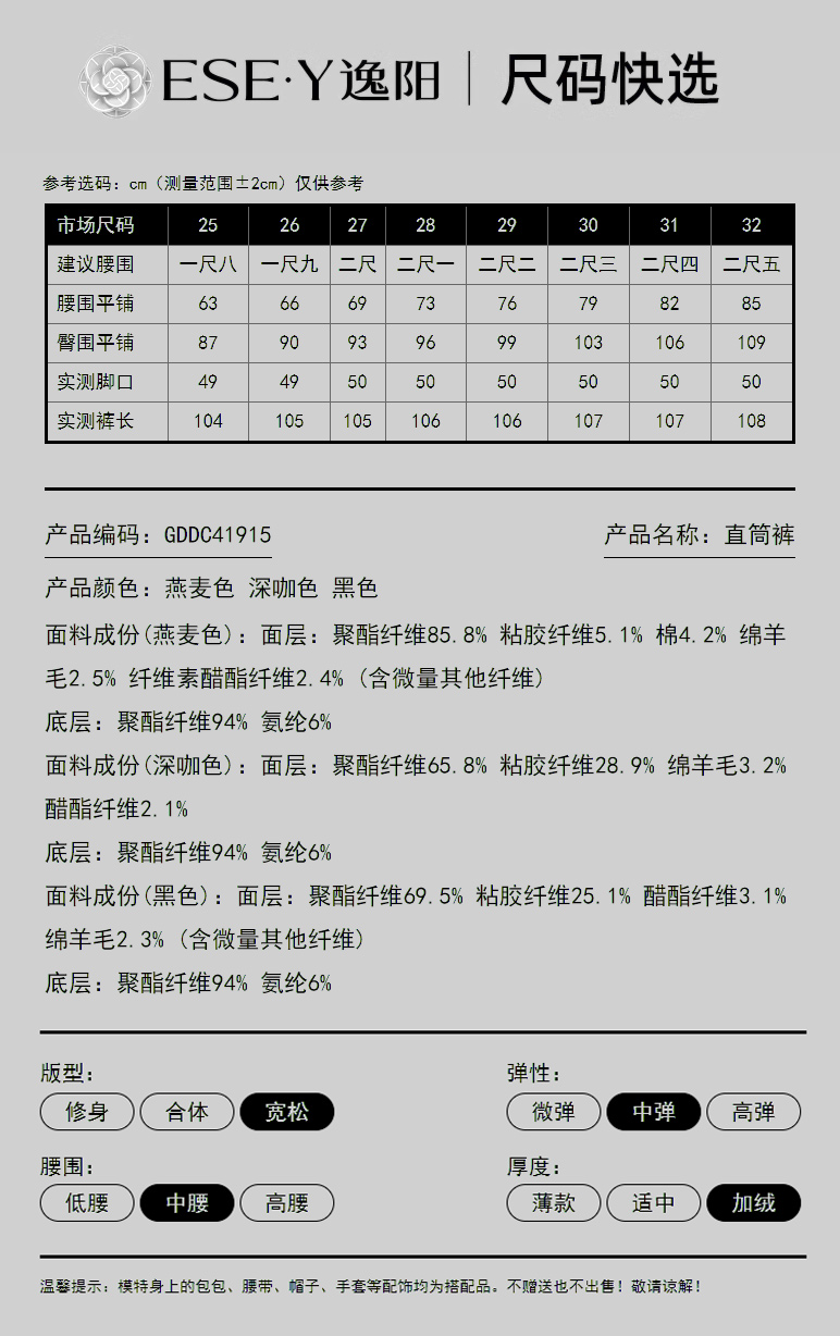 【断色亏本售!厚绒直筒】逸阳冬加绒加厚高腰醋酸羊毛显瘦窄版阔腿裤1915