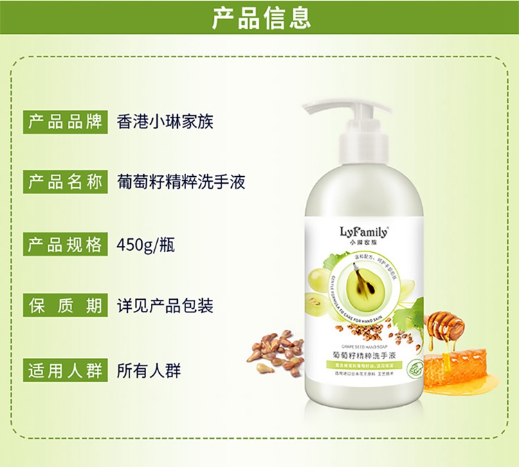 【小琳家族】葡萄籽洗手液 450ml/瓶 厂家直发