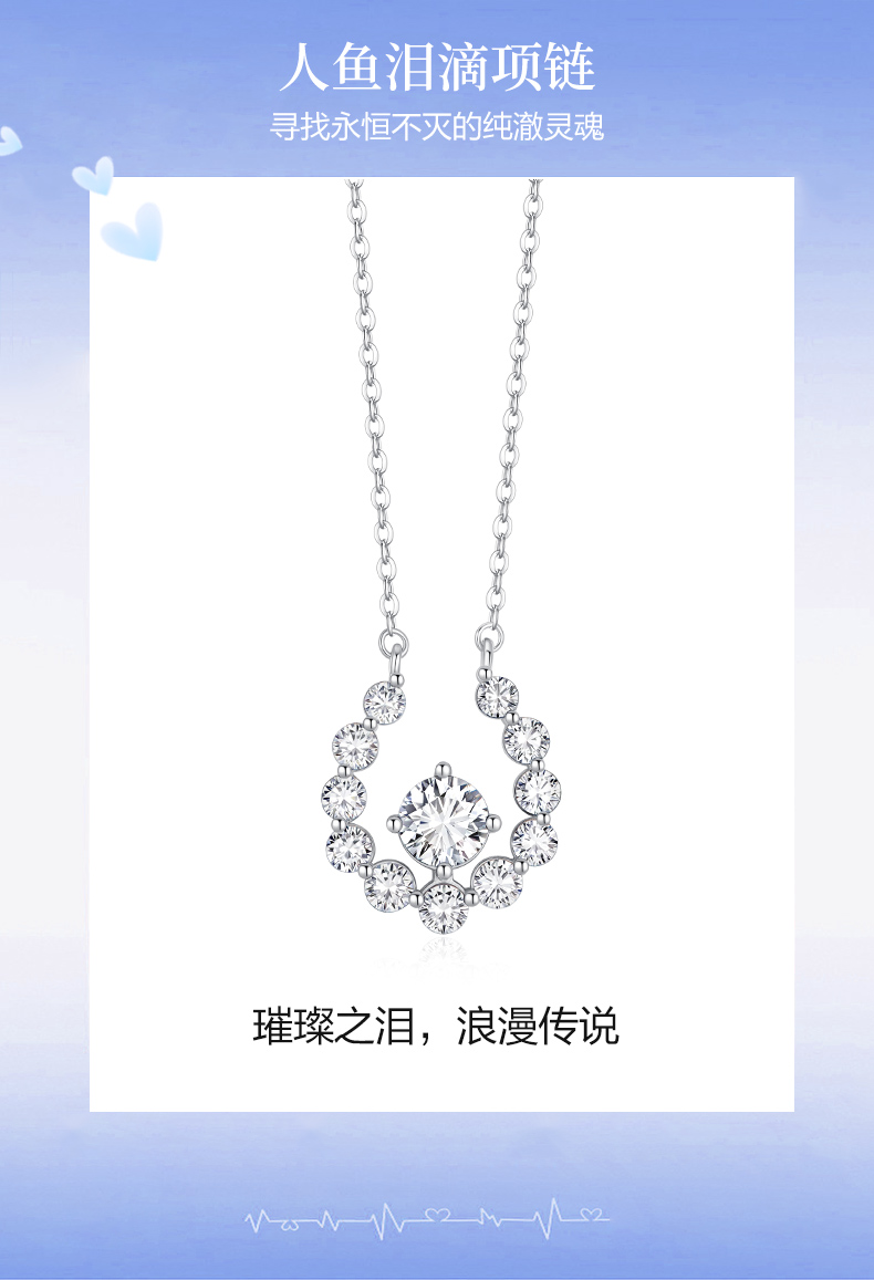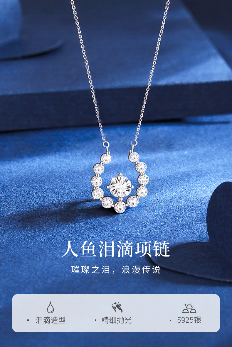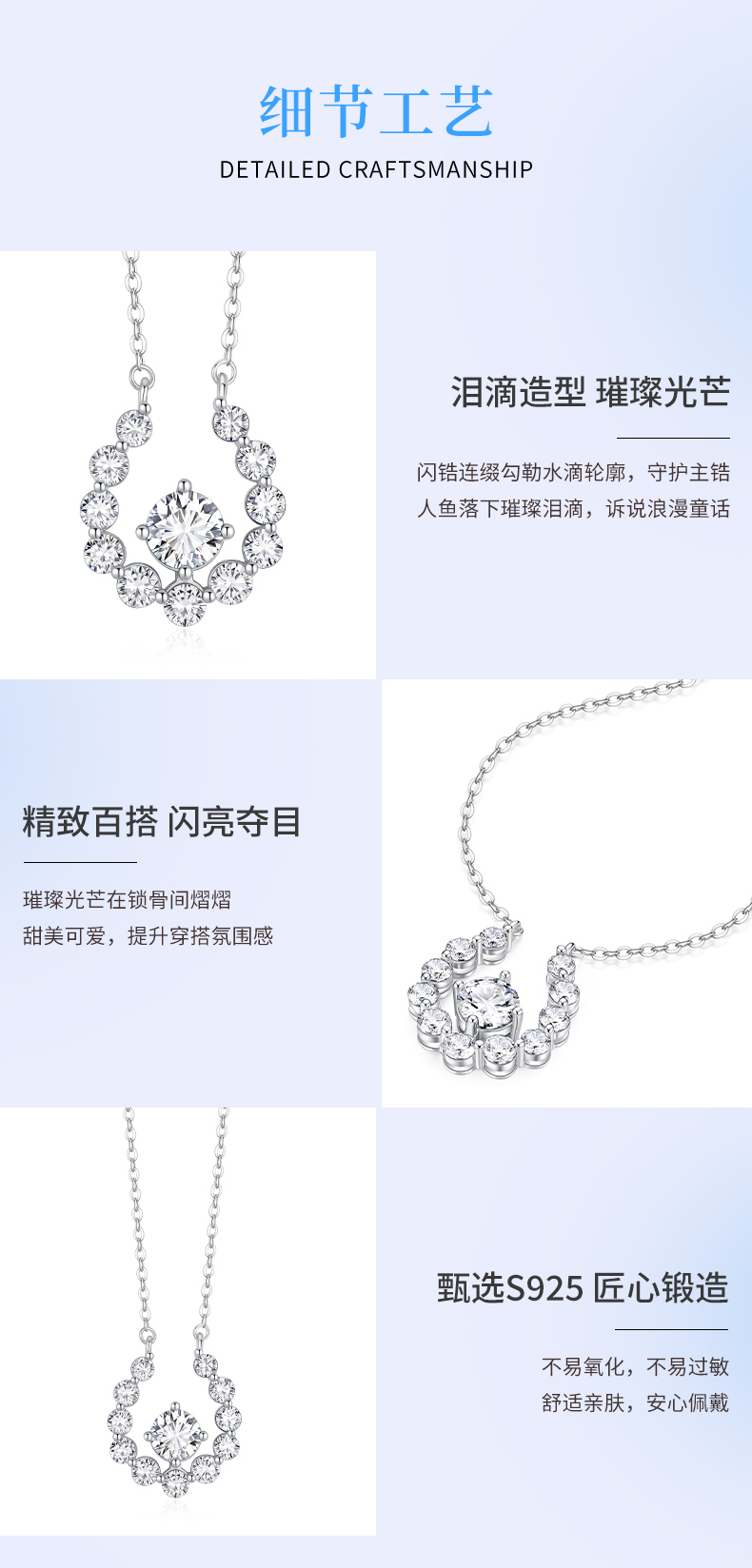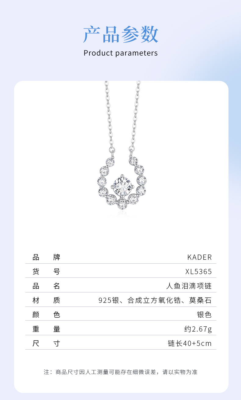 卡蒂罗/KADER 人鱼泪滴项链 925银梦幻人鱼泪爆闪ins风轻奢满镶闪锆 小众高级感韩系百搭通勤锁骨链
