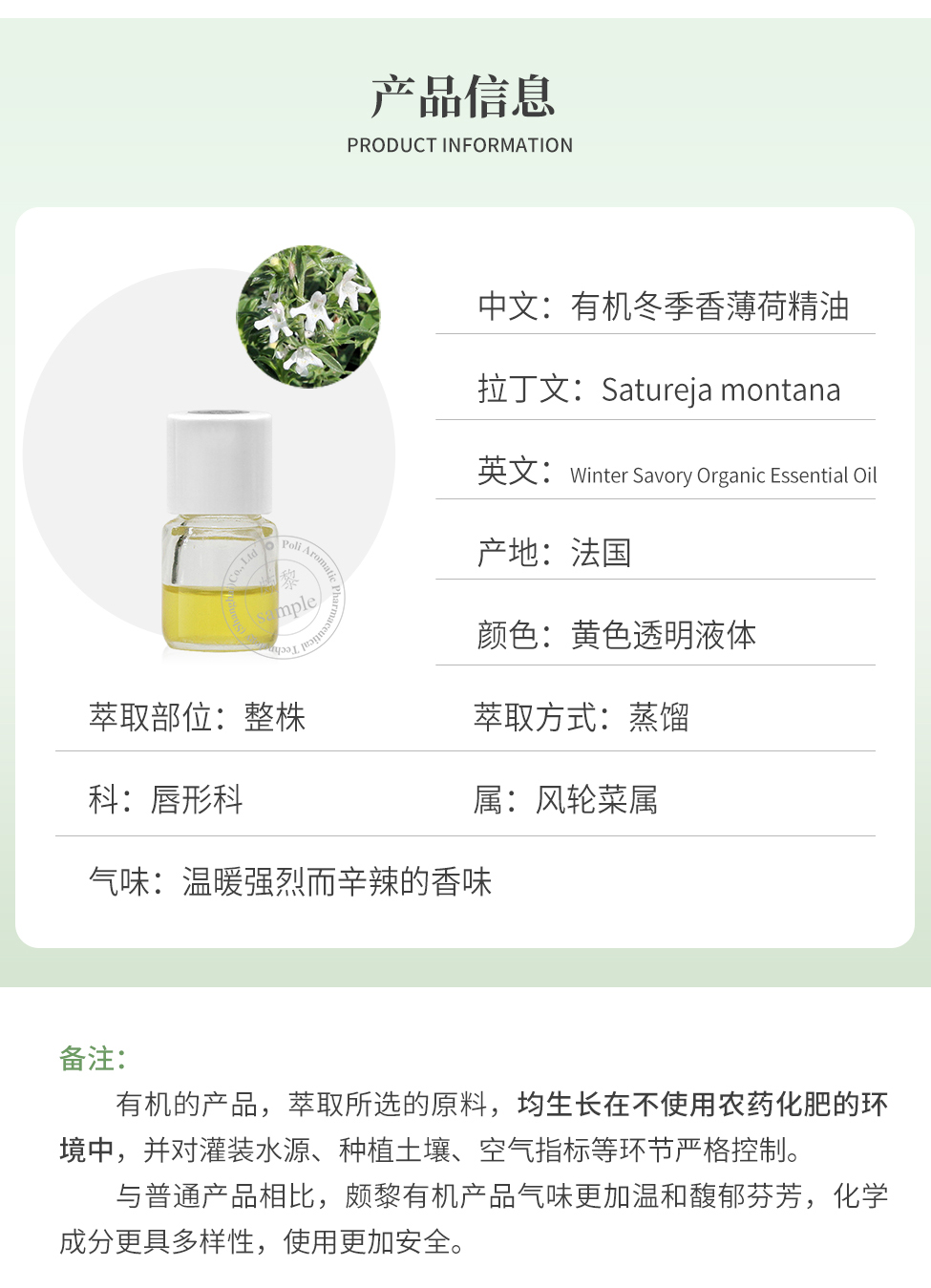 法国进口有机冬季香薄荷精油 护肤补水精油原料 颇黎单方精油