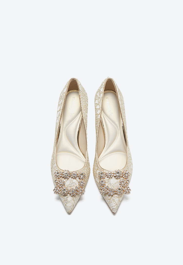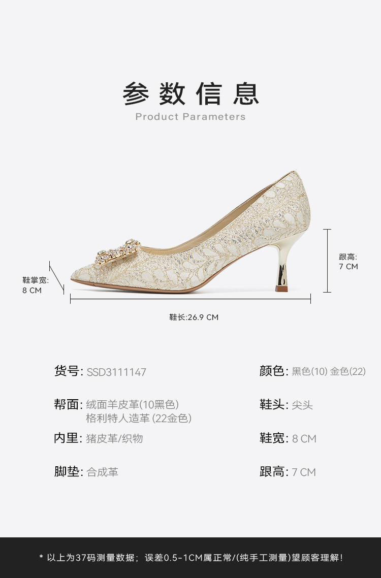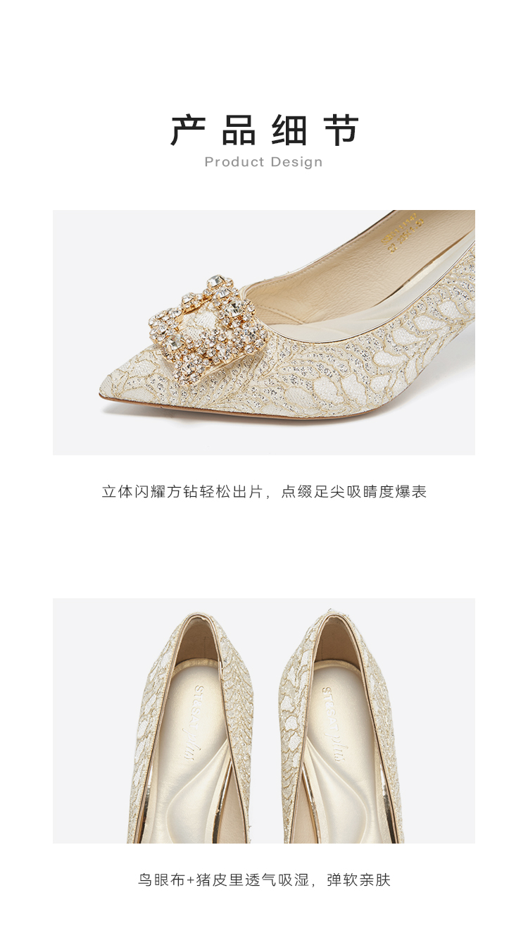 【高定系列】星期六法式轻奢蕾丝钻扣细高跟宴会鞋SSD3111147