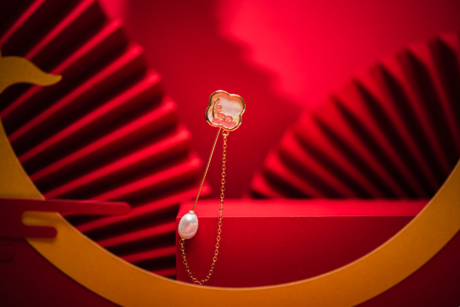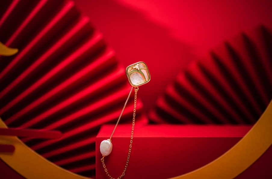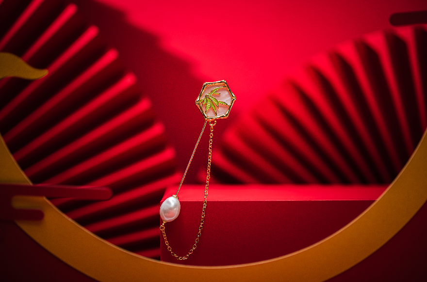 珐琅彩工艺配以传统国风色系呈现,金属部分选用铜镀真金加厚电镀工艺,达到长期佩戴不易脱色的效果。