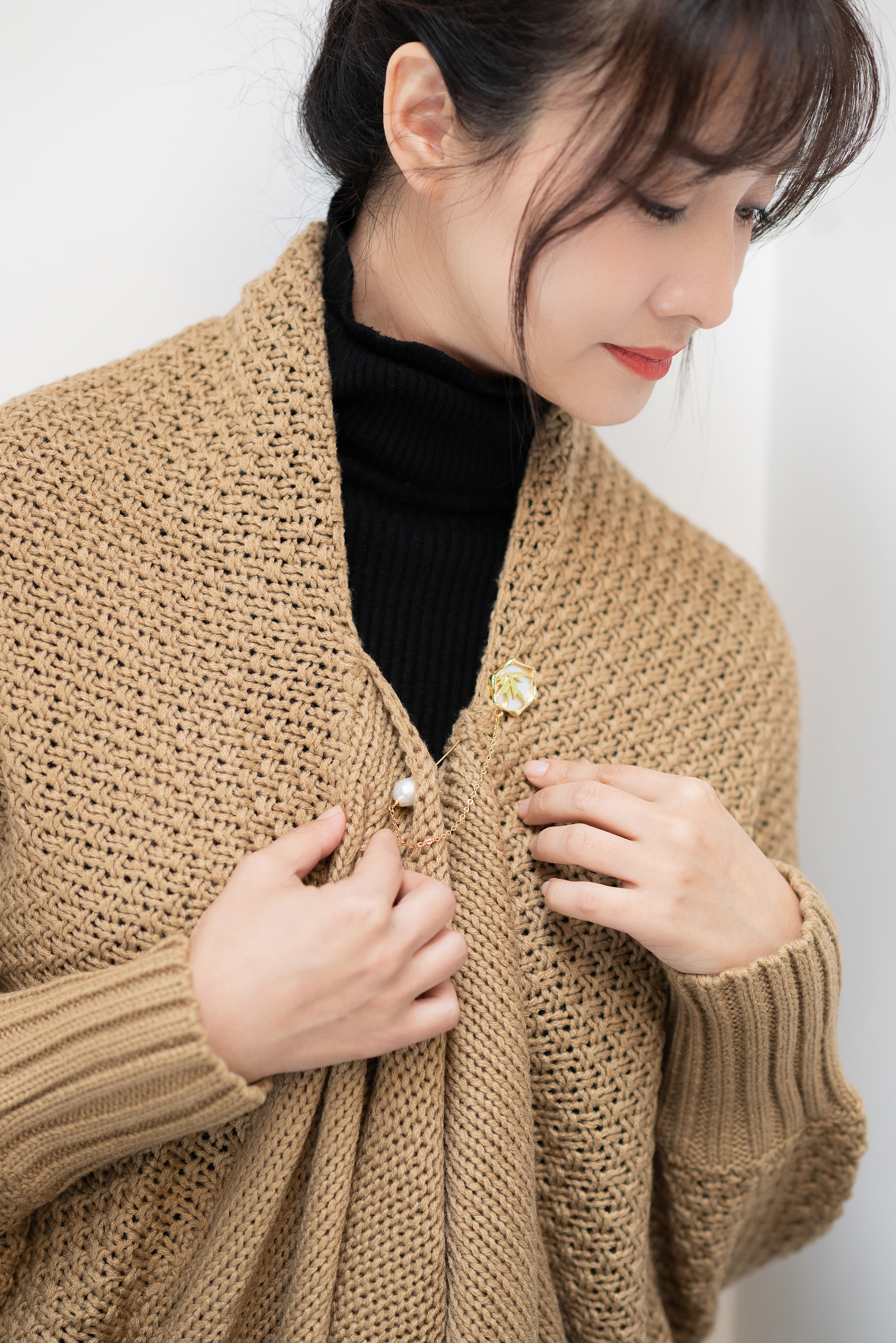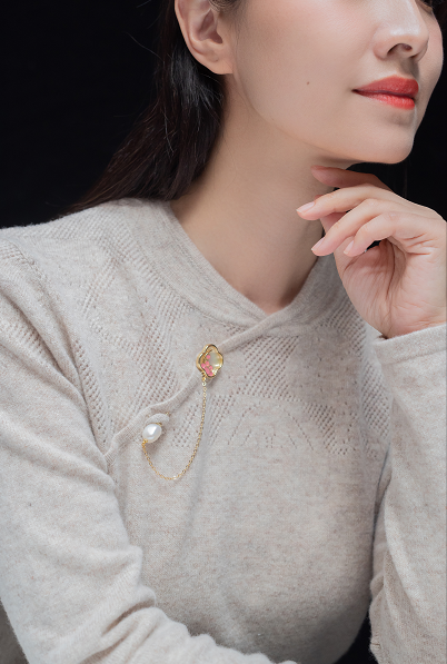珍珠、白贝母、珐琅彩、流苏…构成了整件多用设计胸针。