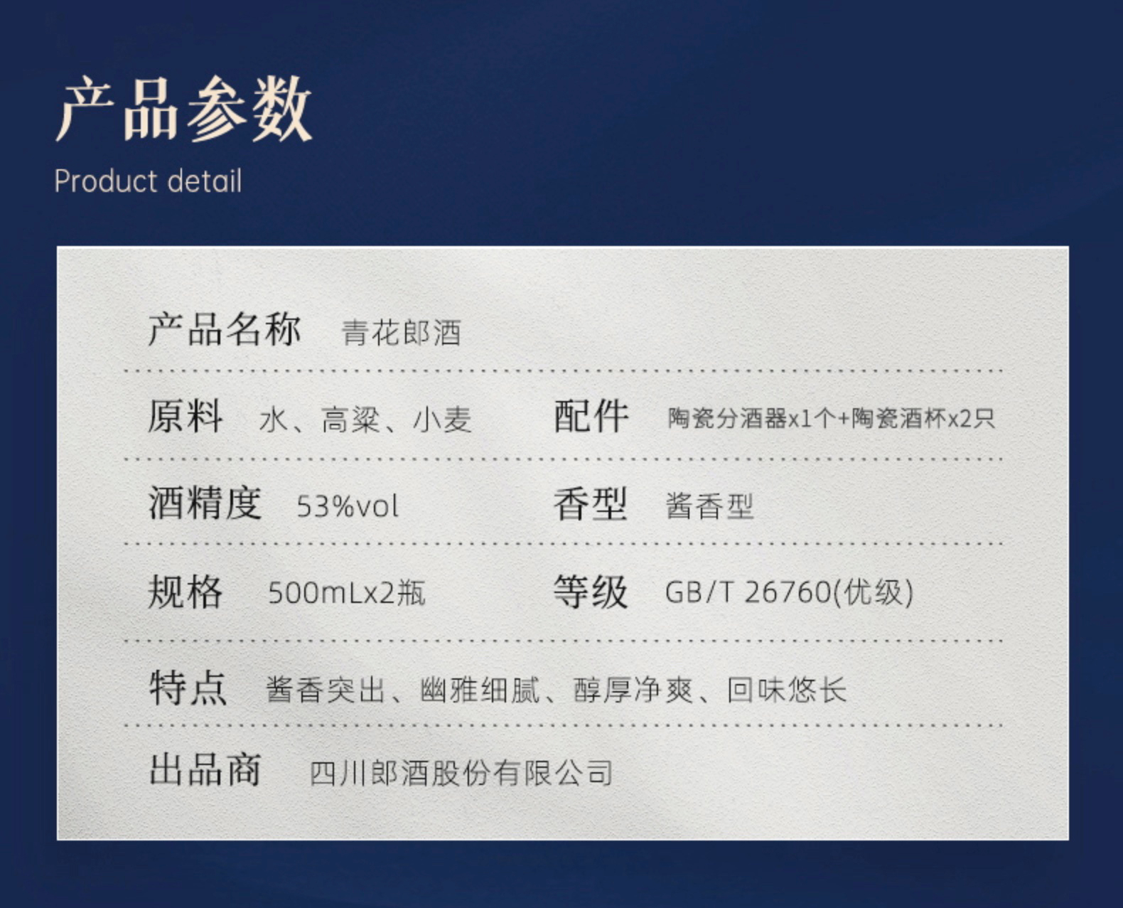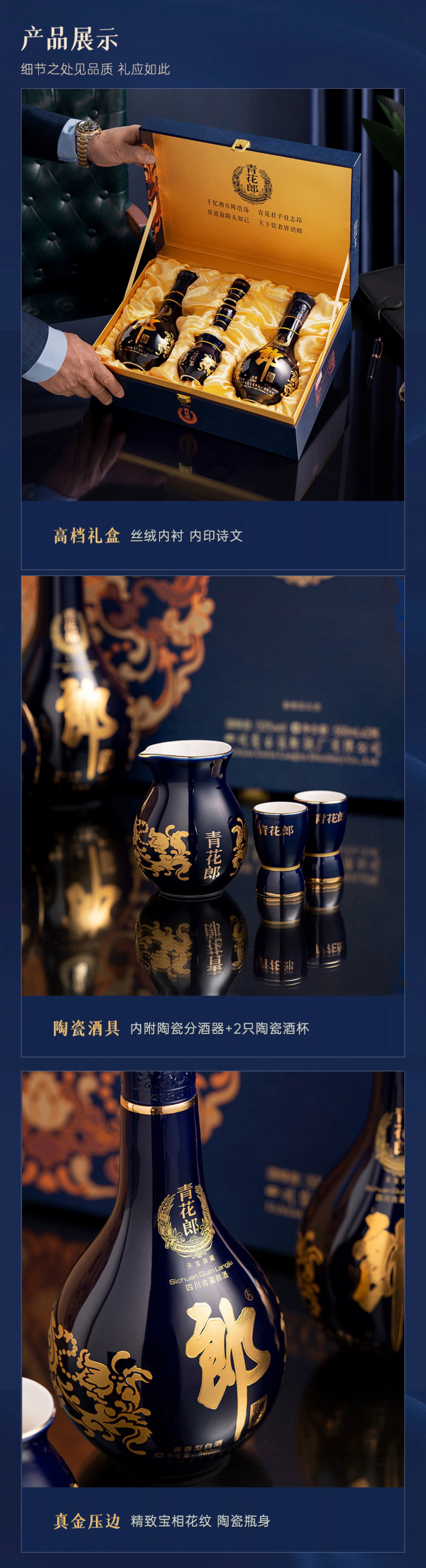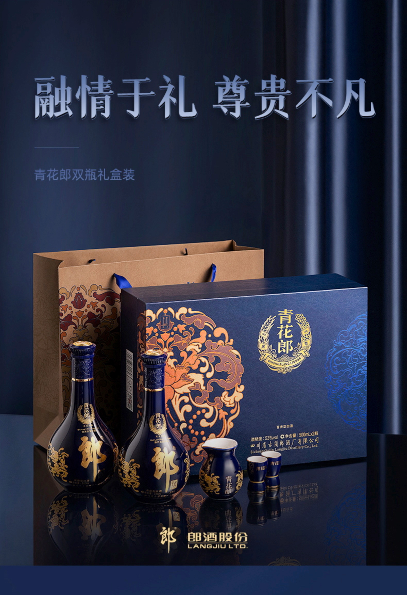 郎酒 青花郎礼盒 53度酱香型白酒 500ml*2瓶*4盒 礼盒 整箱装