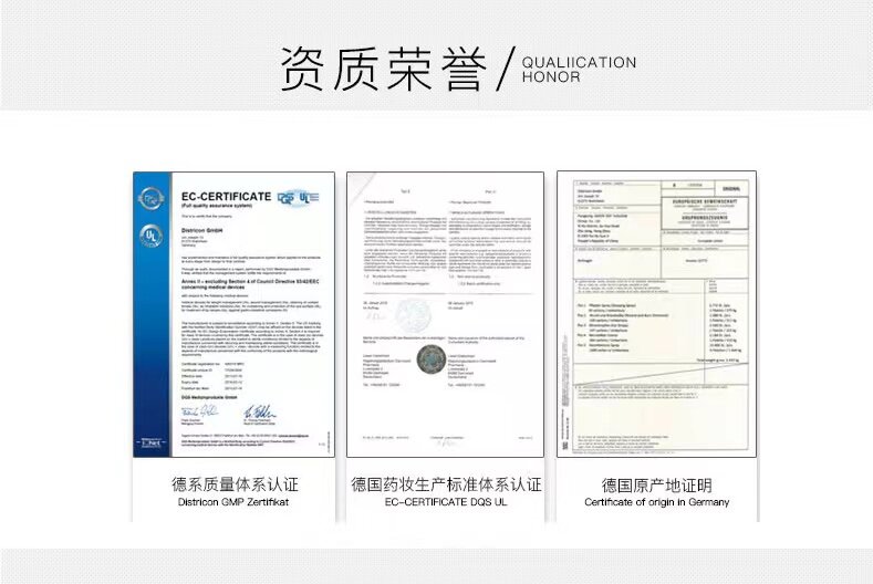🔆旗下产品均拥有德国质量体系及药妆生产标准体系双认证。