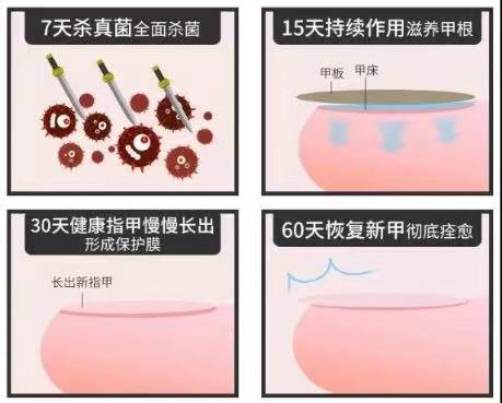 😜分子活性极强,能迅速渗透厚厚的指甲,深达甲根,彻底清除指甲内的有害菌落。