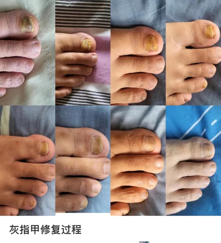 ⚠️使用1周,症状较轻的指甲颜色变淡,坚持使用1个月后,最严重的灰甲也重新长出粉嫩新甲来。