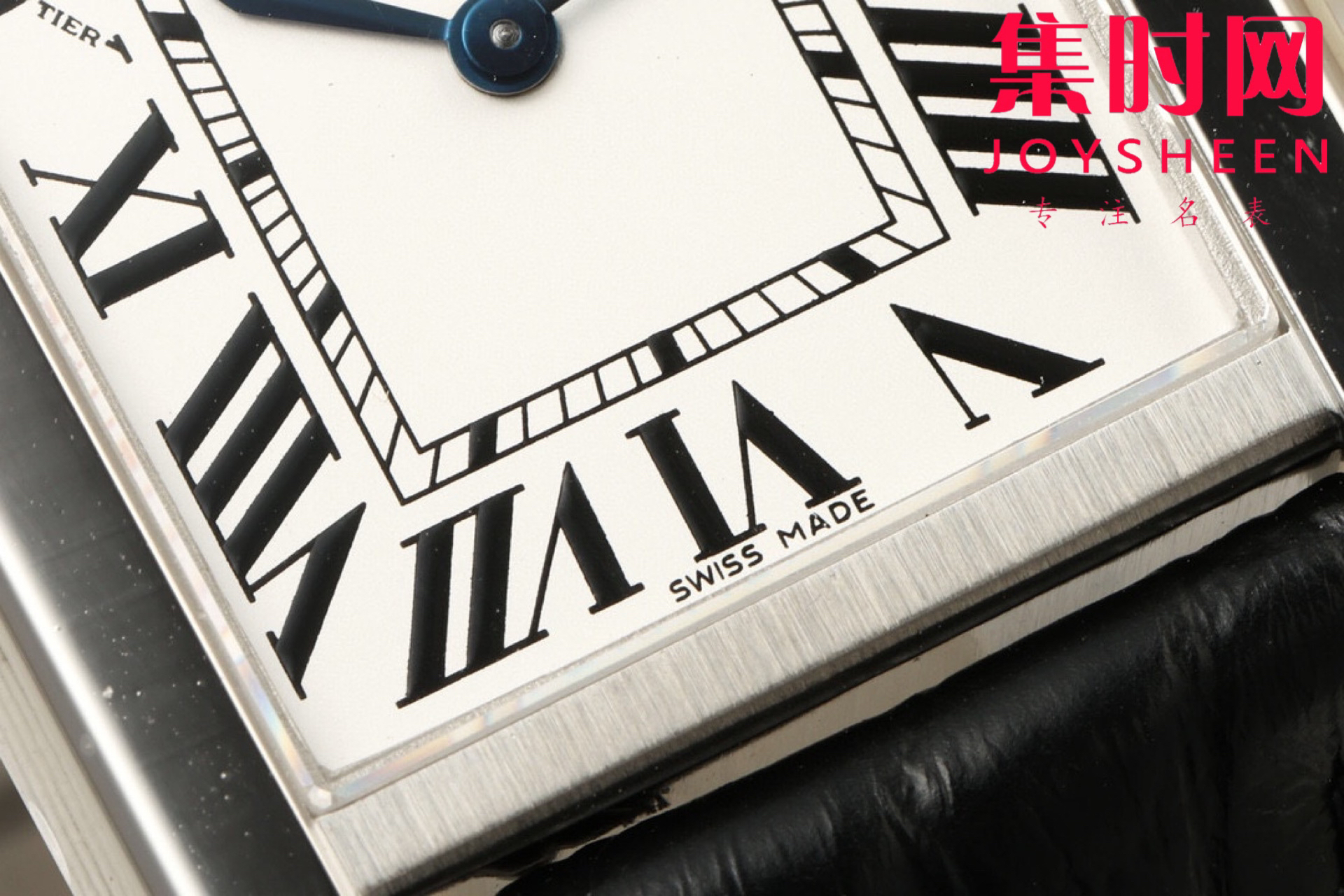 【表盘】表盘由经典罗马刻度显示,白色表盘搭配蓝钢指针,在盘面中央,有方形刻度内圈。融合一流品位和前卫设计的坦克腕表,现代感历久常新,始终站在时代前端,被称为腕表史上重要的设计之一。