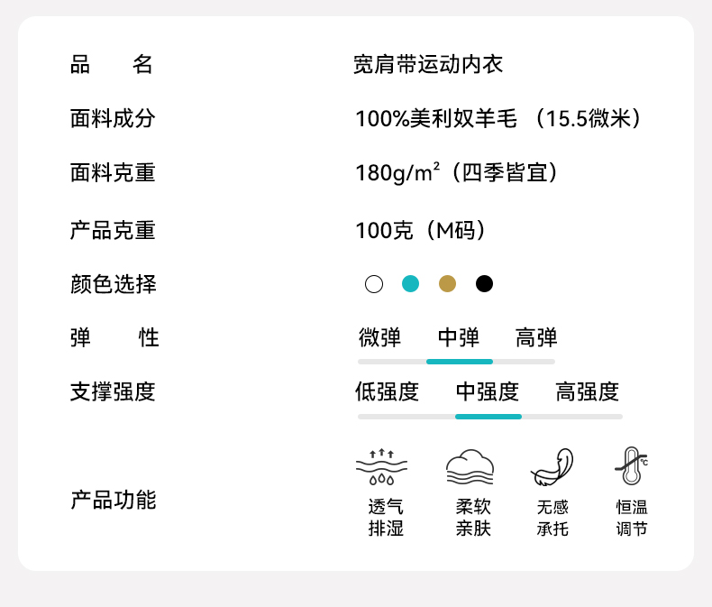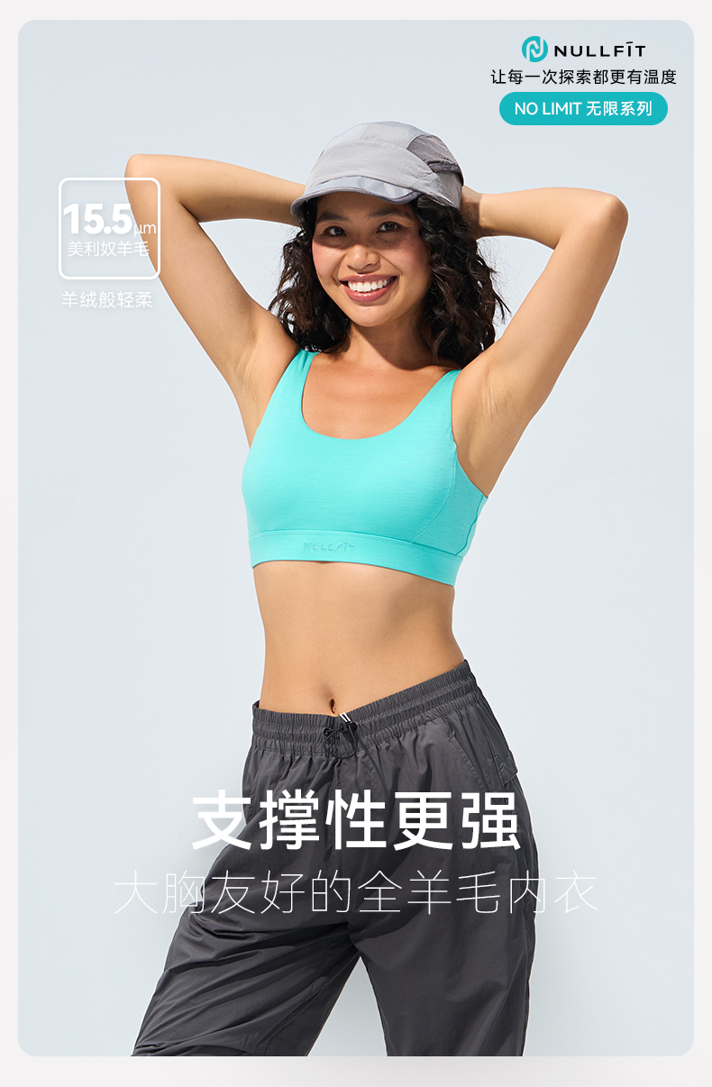 【燃冬特惠!】NULLFIT户外15.5微米 美利诺羊毛文胸透气速干后搭扣运动内衣中强度【tbzg】