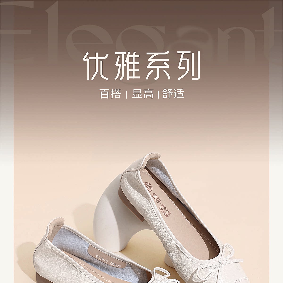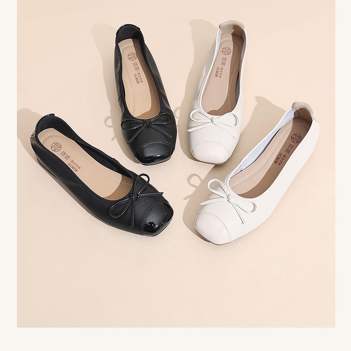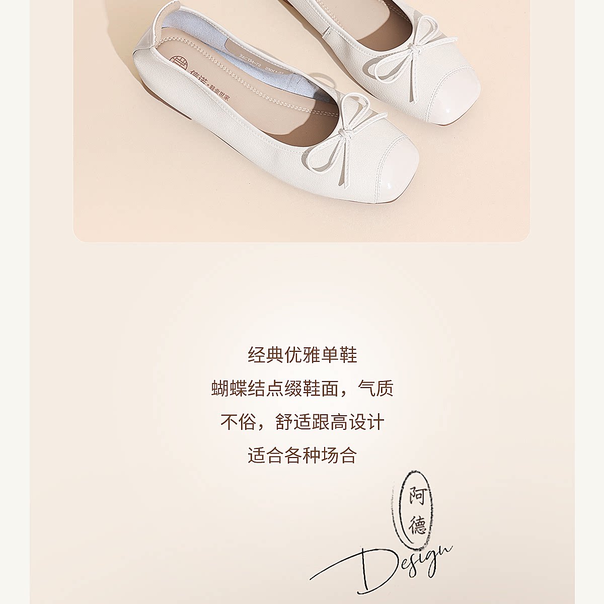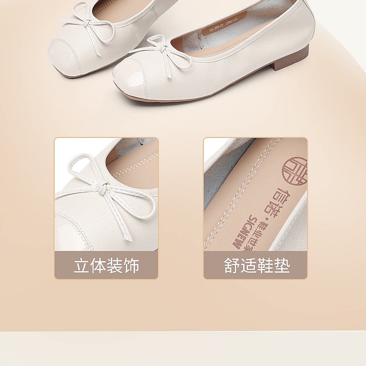 法式芭蕾舞鞋女蝴蝶结浅口单鞋粗跟舒适百搭通勤鞋X6C134-72