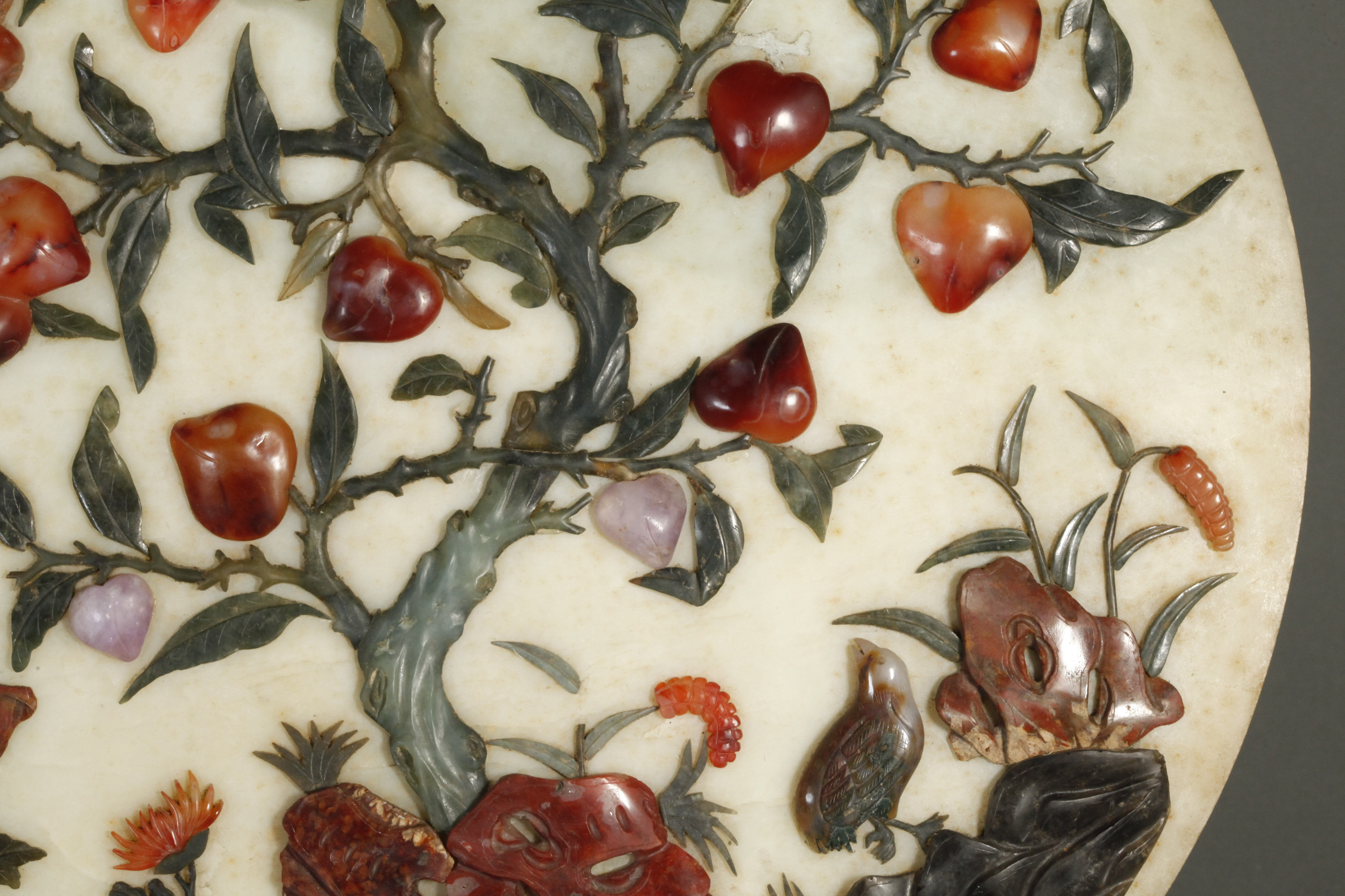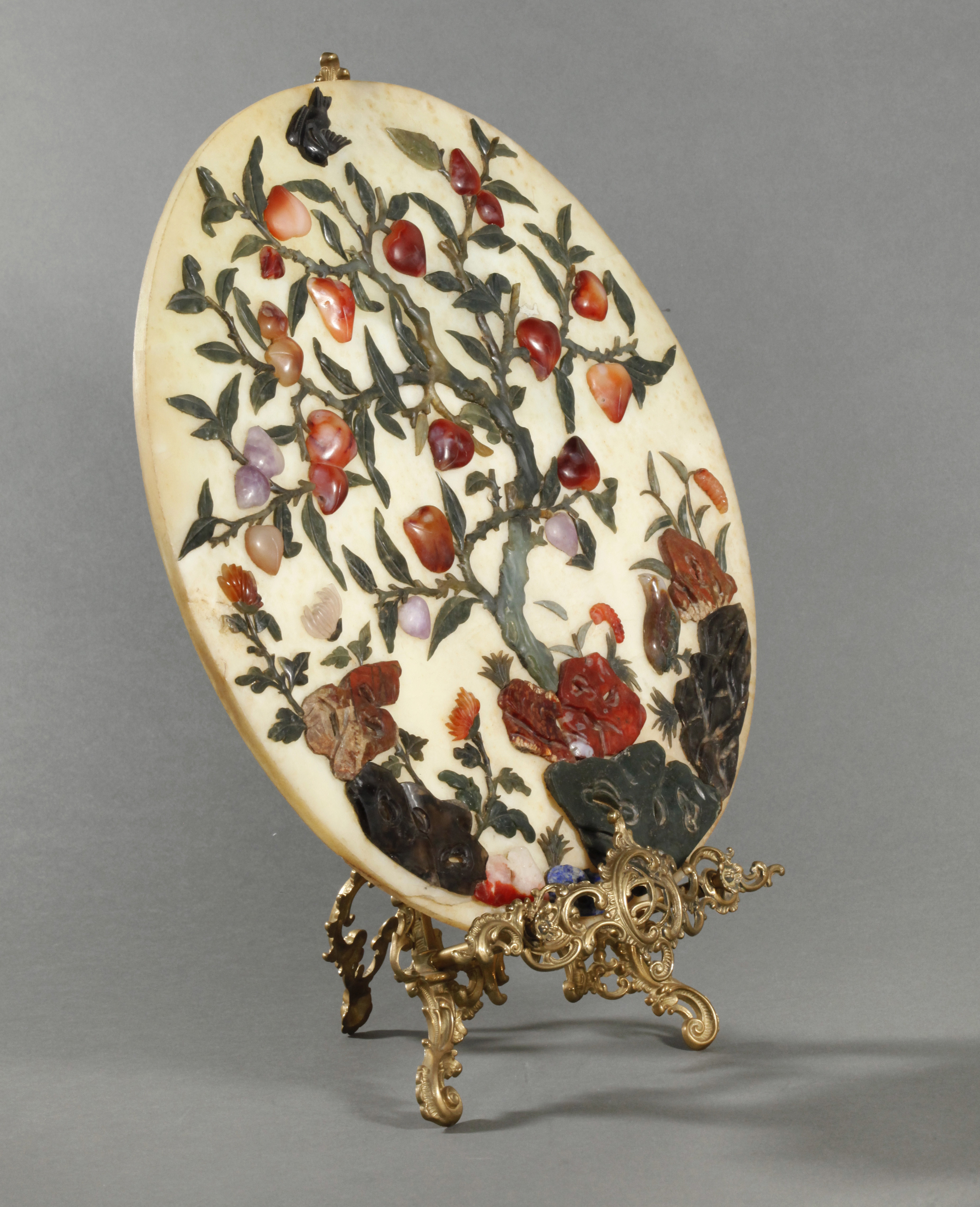 独角鹿西洋古董1900年代中国出品玛瑙青金石玉盘摆件