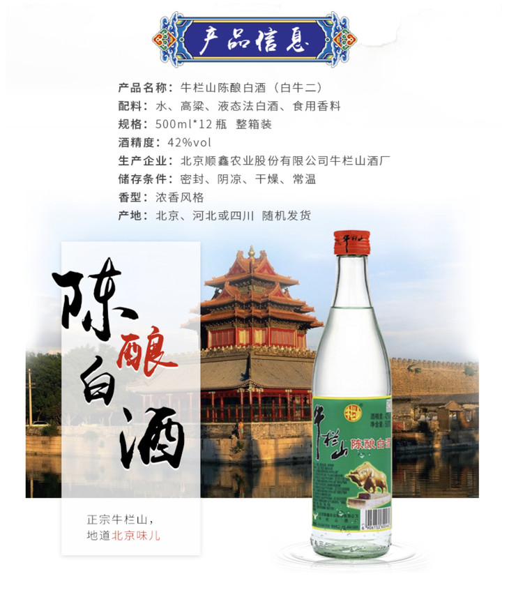 牛栏山浓香型白酒42度陈酿500ml经典醇香