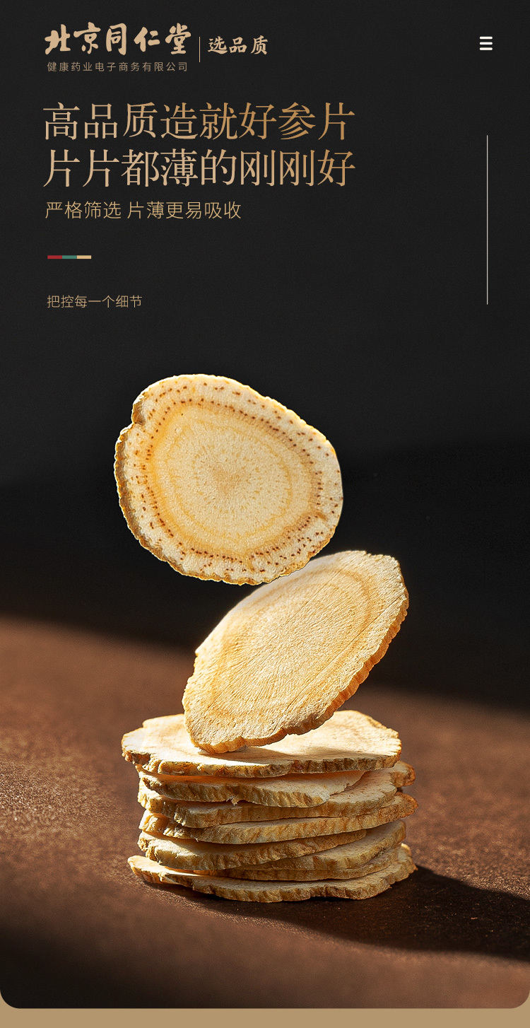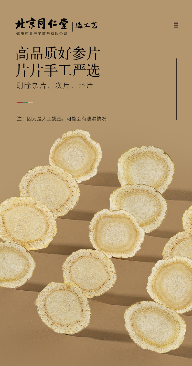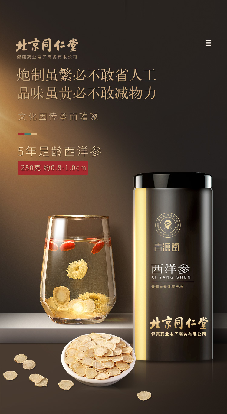 北京同仁堂健康 青源堂西洋参切片250克 参茶花期花旗参含片泡水用人参皂苷可磨粉礼品