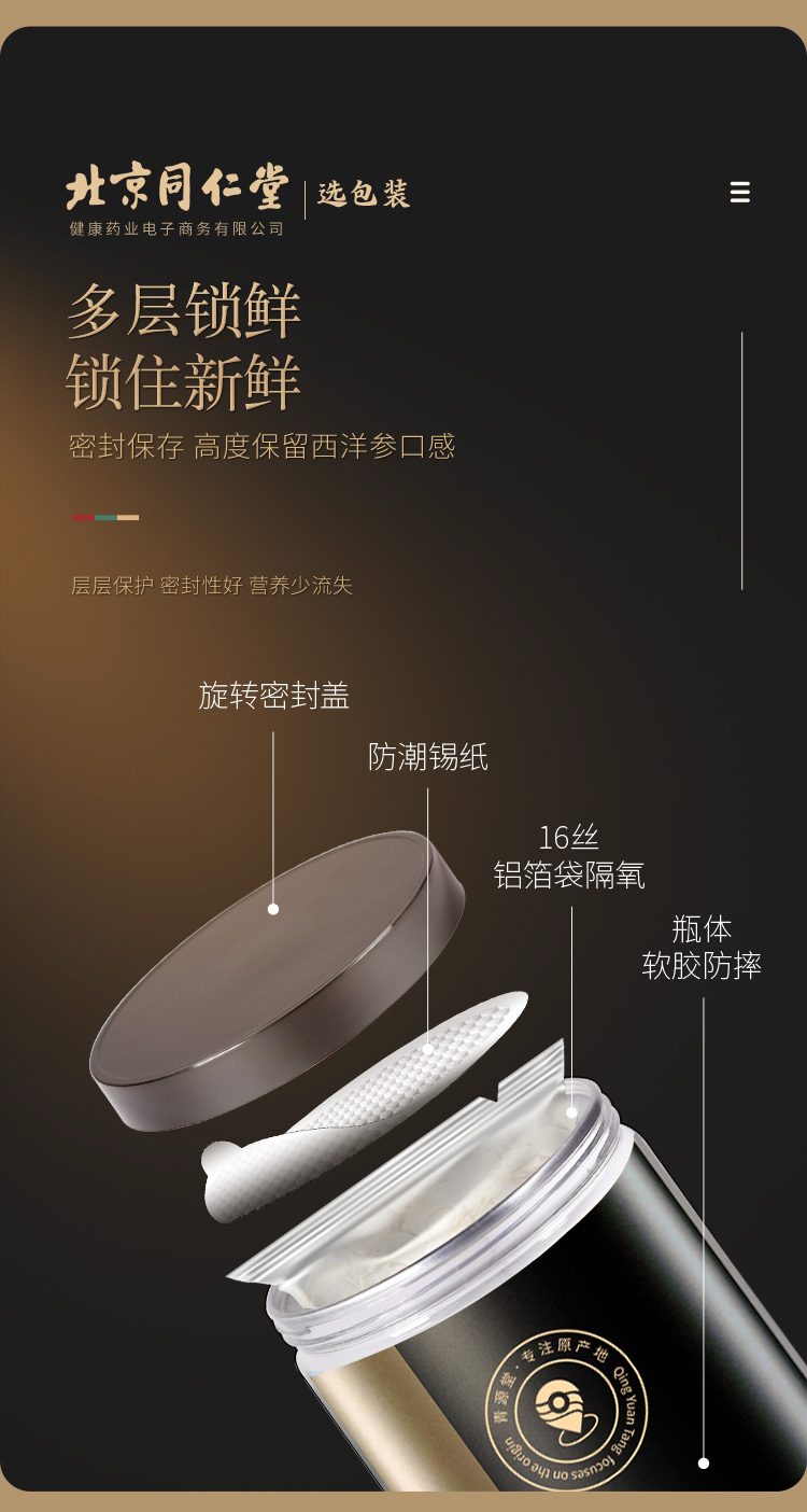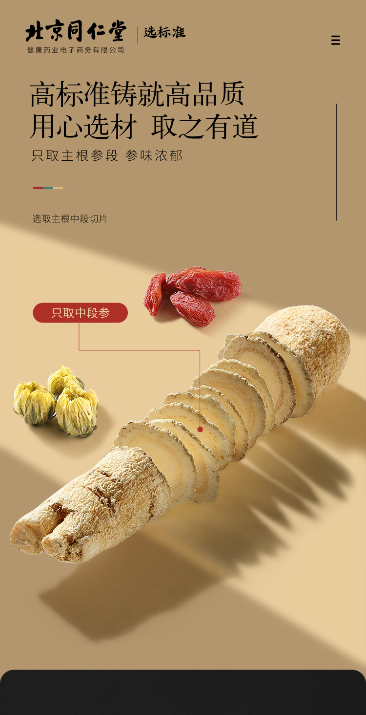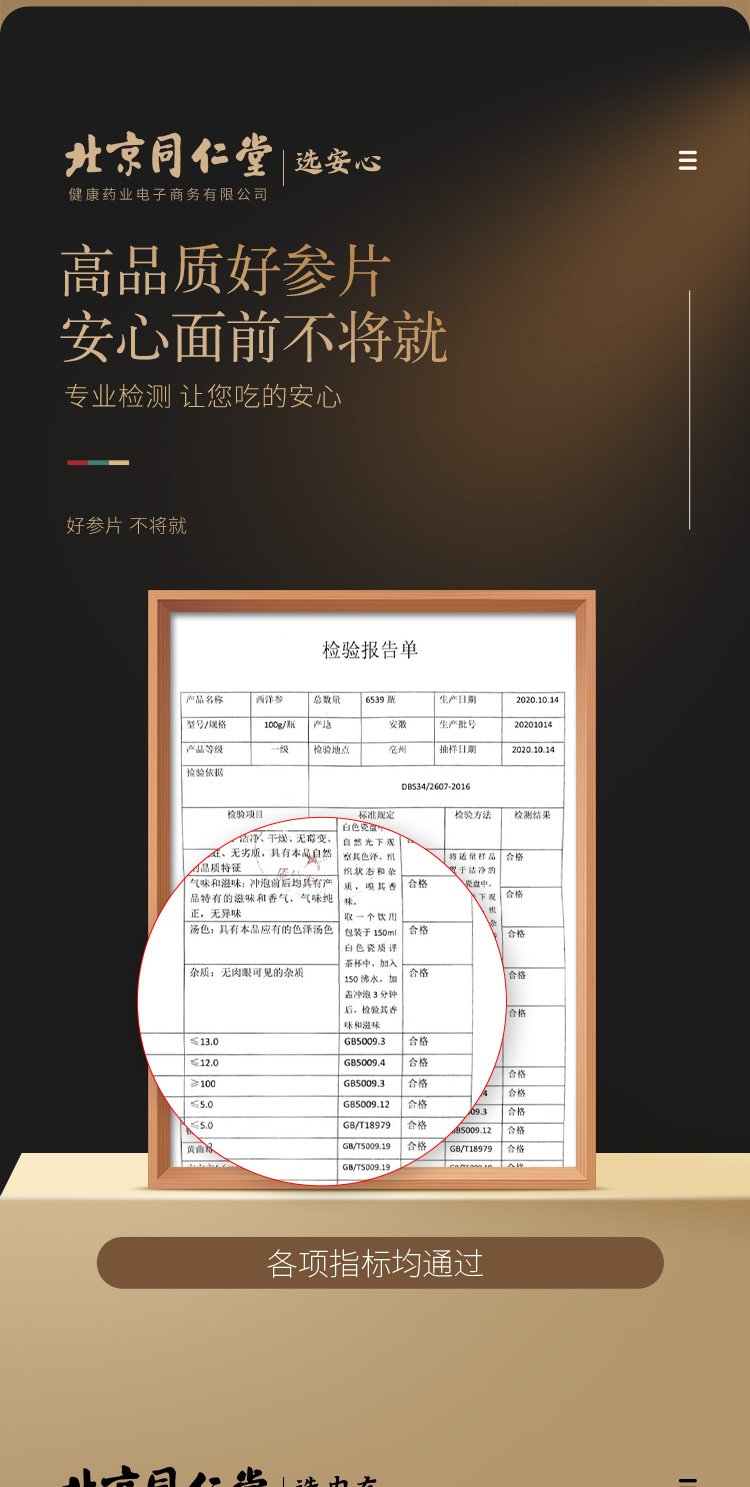 北京同仁堂健康 青源堂西洋参切片250克 参茶花期花旗参含片泡水用人参皂苷可磨粉礼品