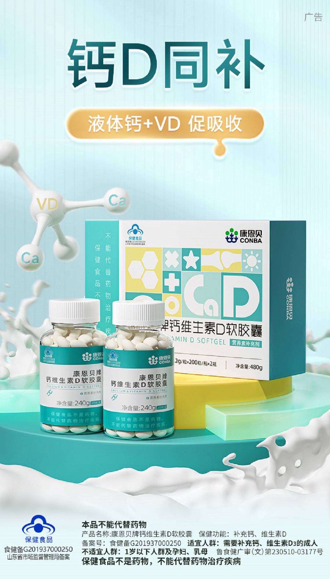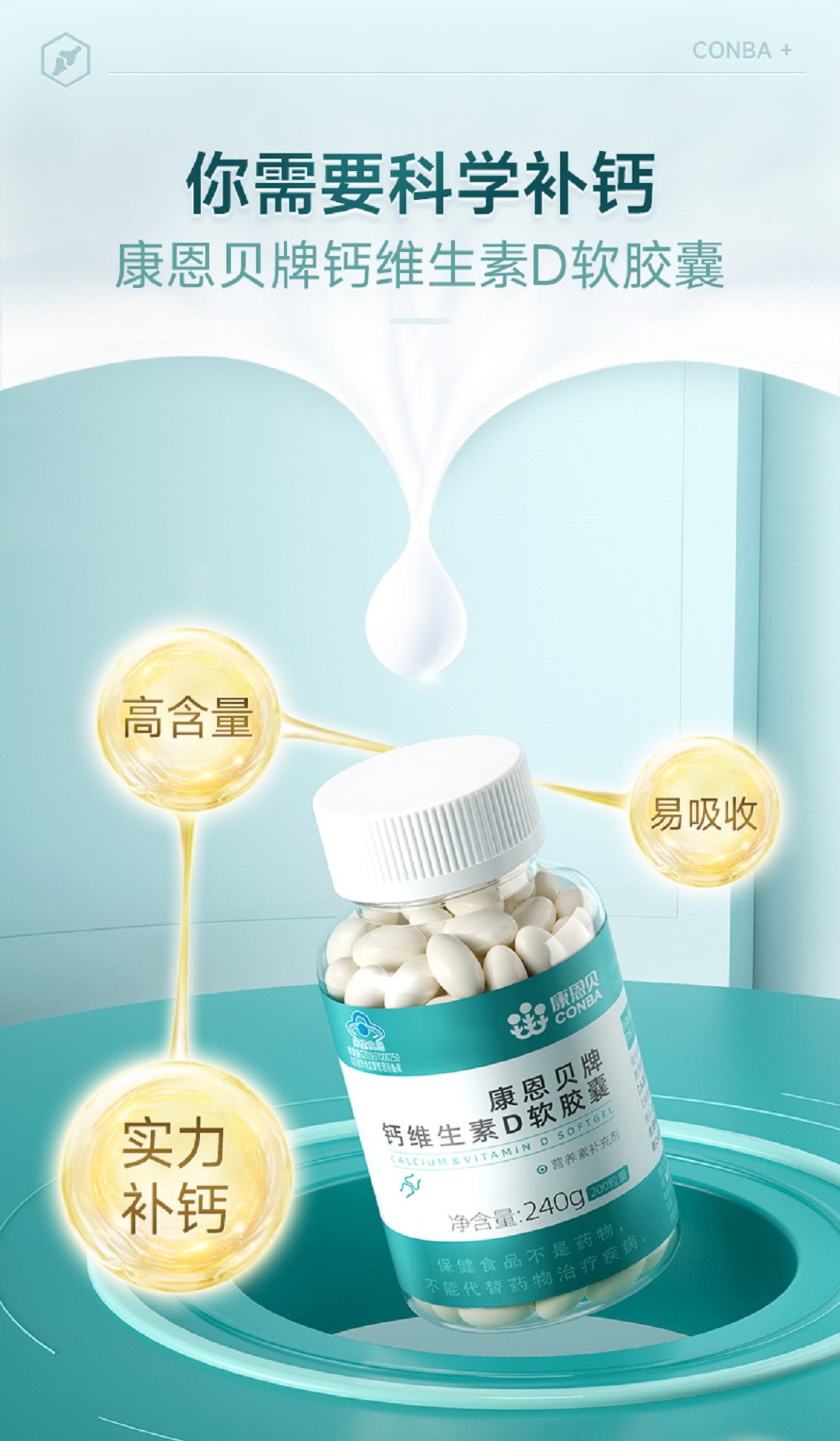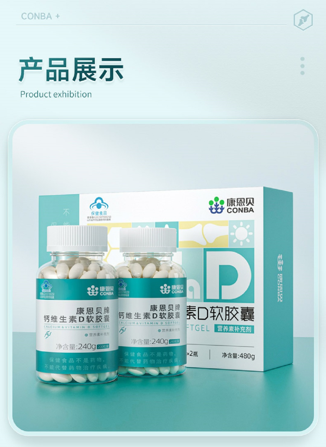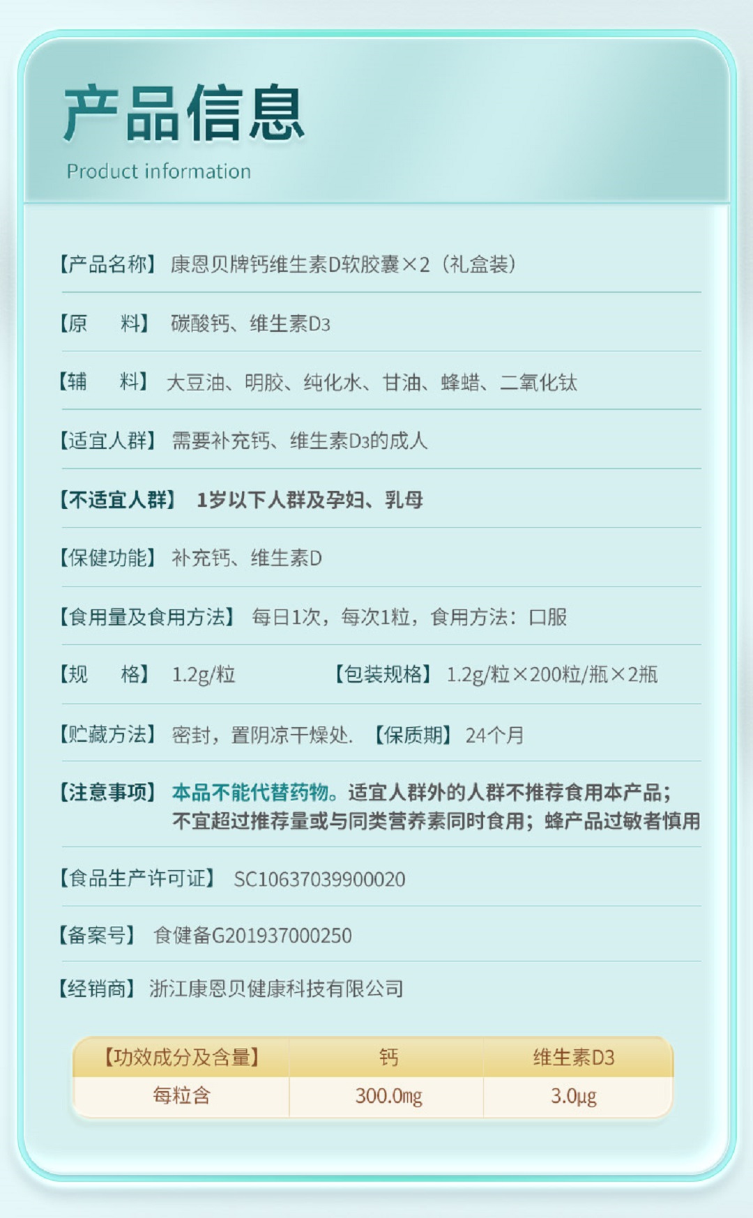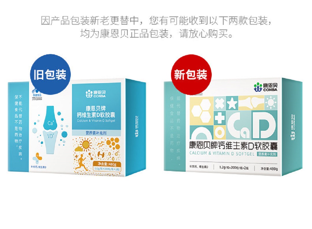 康恩贝钙维生素D软胶囊200粒*2小礼盒装