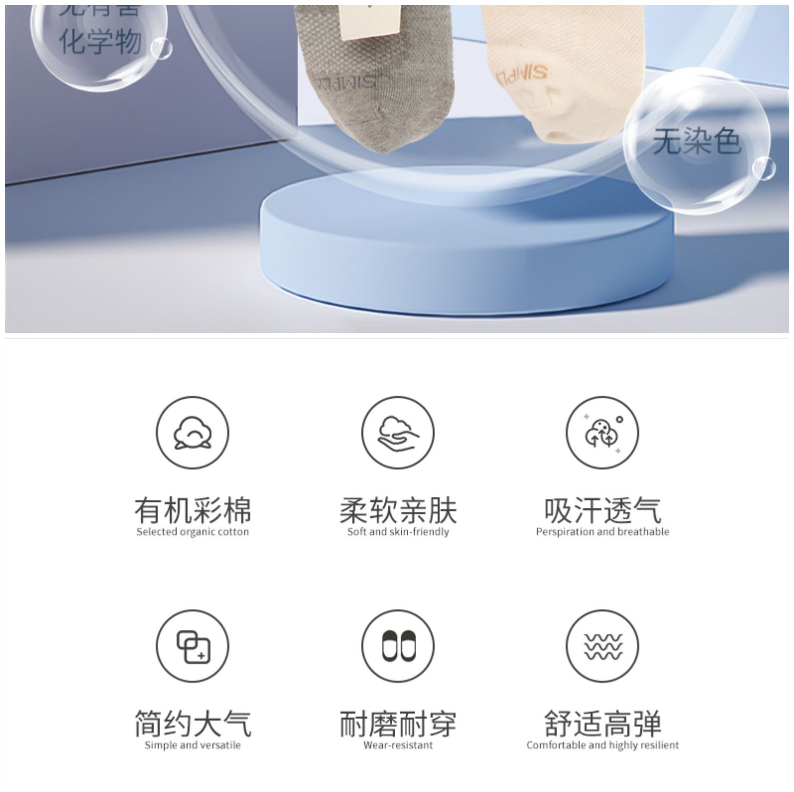 素道有机彩棉运动袜 功能袜 男女同款 中长筒袜 袜子