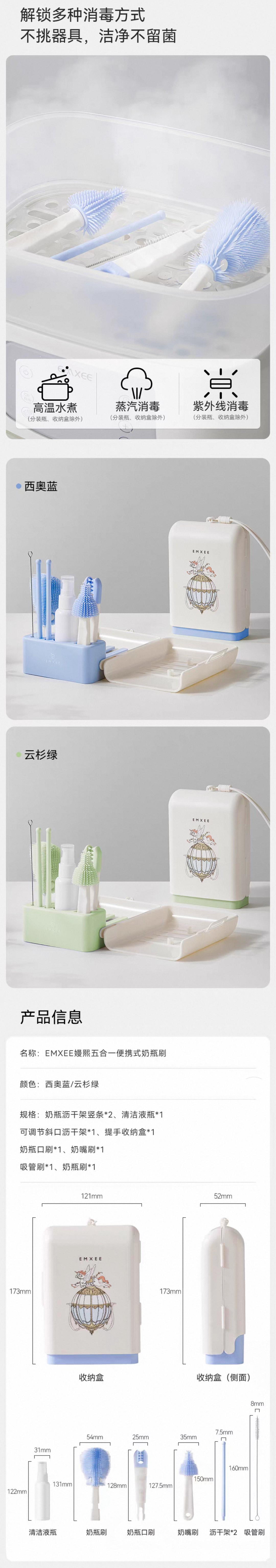 嫚熙便携奶瓶刷新生婴儿专用奶嘴清洗刷宝宝外出硅胶奶瓶刷子套装