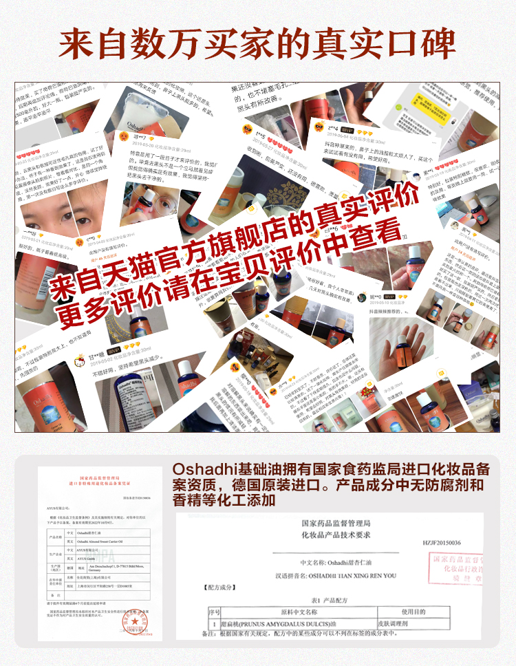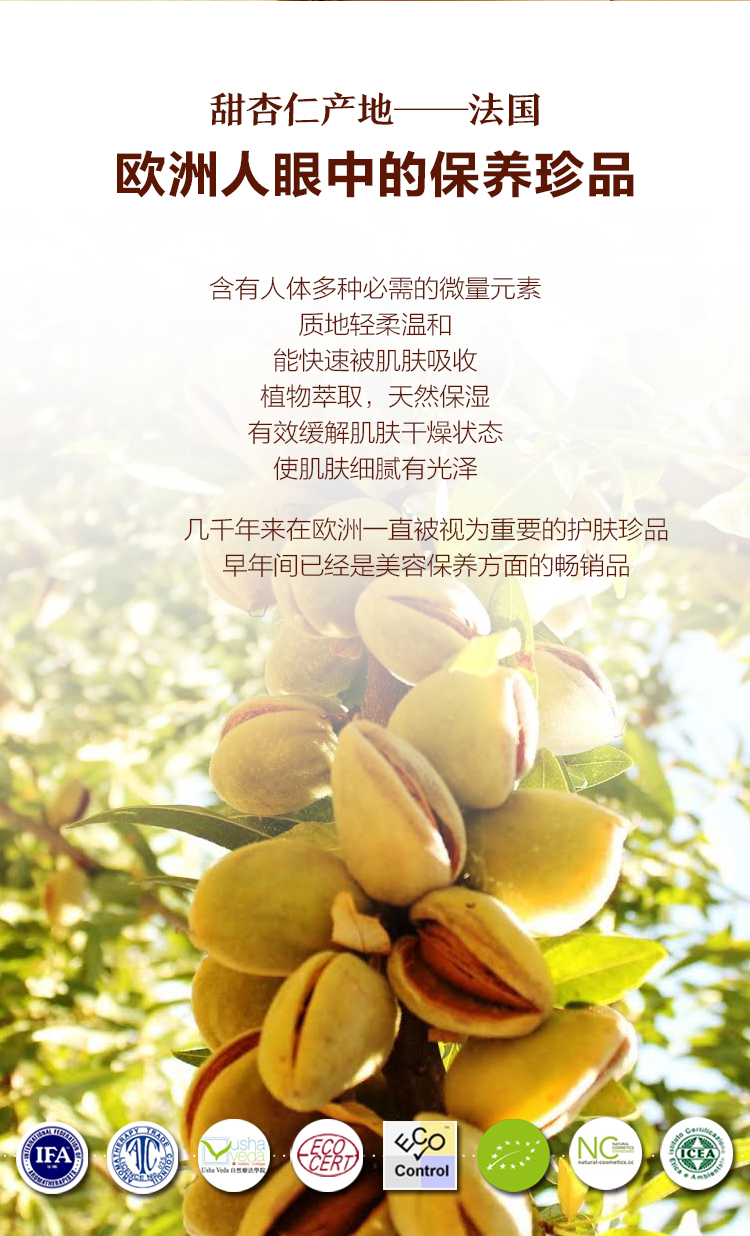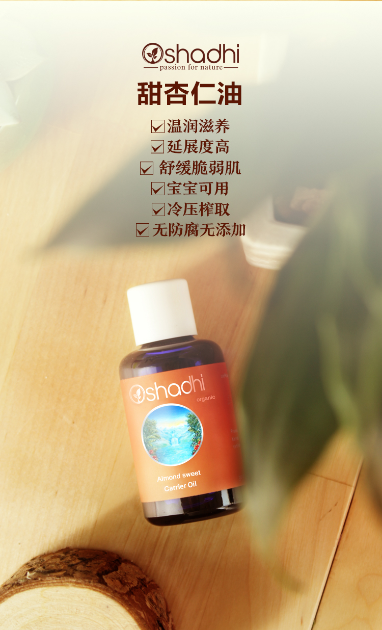 Oshadhi德国O家甜杏仁油保湿温和滋润身体按摩基底油基础油JPY带授权招加盟代理