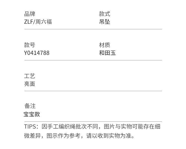周六福玉石吊坠和田玉青玉如意玉坠宝宝款玉石佳礼送女友礼物