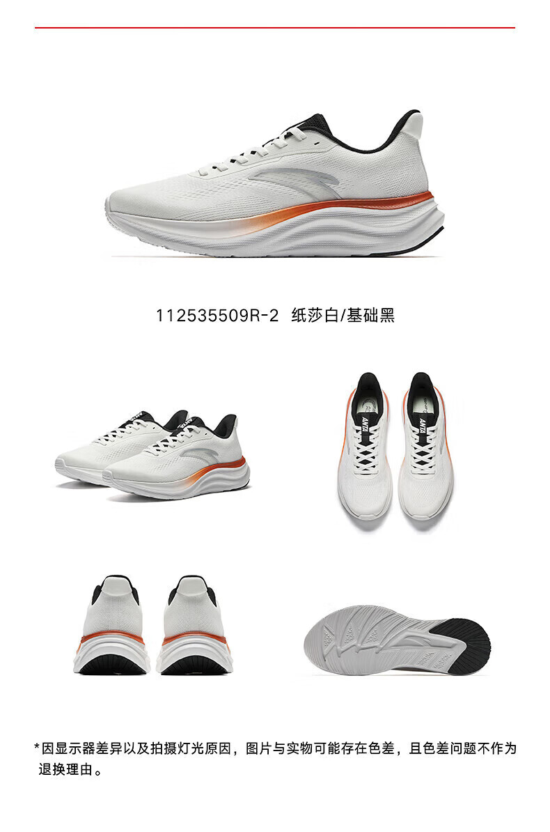 安踏(ANTA)轻云2丨跑步鞋网面轻质透气软底运动鞋耐磨回弹休闲鞋112535509R 纸莎白/基础黑-2