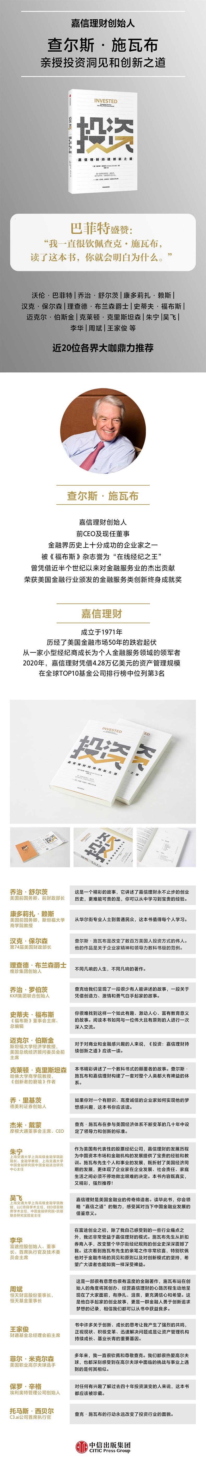 本书由嘉信理财创始人查尔斯·施瓦布亲自讲述了他创办并运营嘉信理财近50年的全历程,包括他如何运用革命性的方法,将股票投资从机构投资者手中解放出来,让所有普通的美国人有机会参与美国经济、技术和各领域的爆炸式增长,改变了美国人的投资方式。
