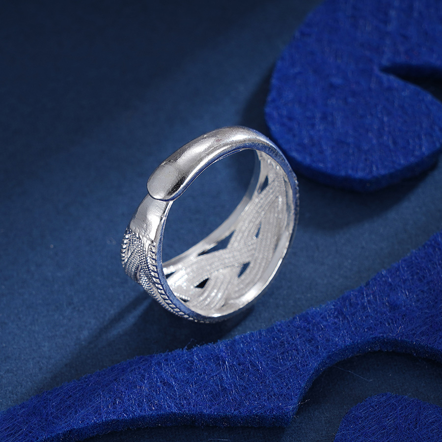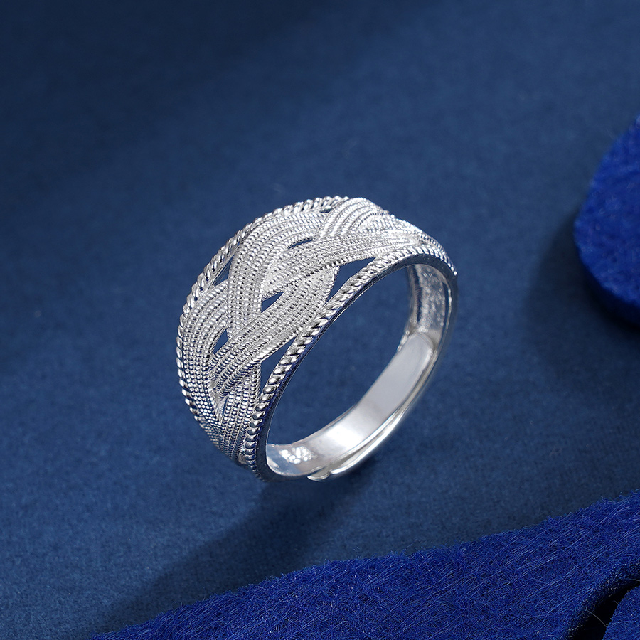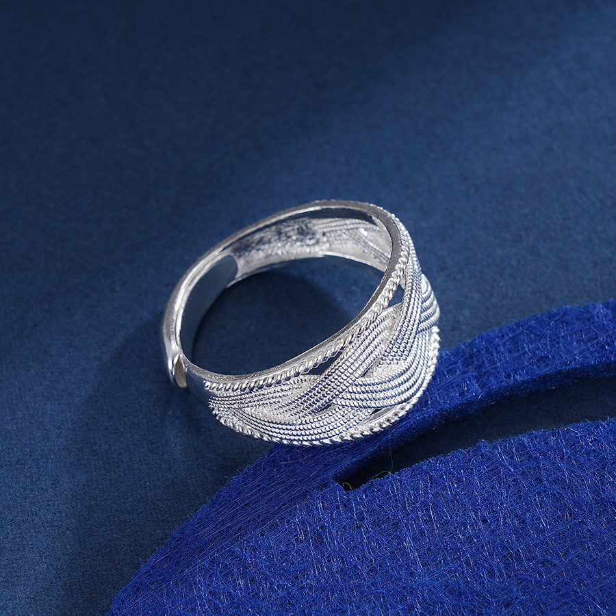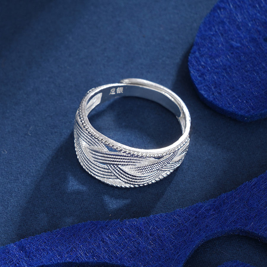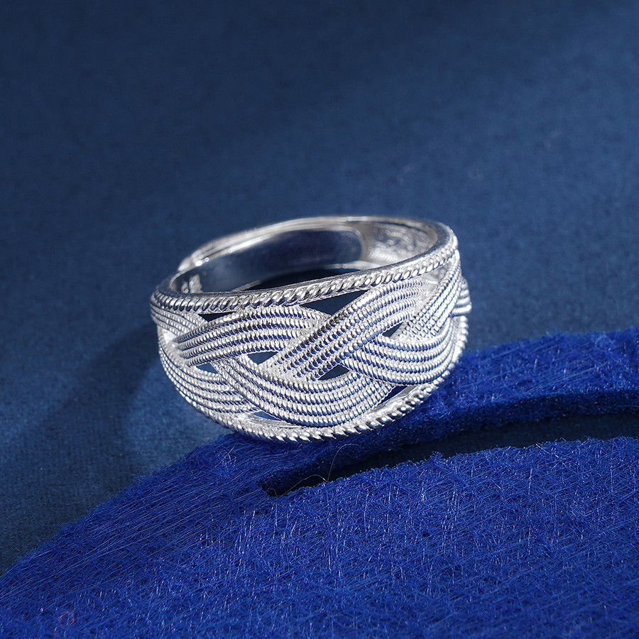 【寓意】:银花丝宽面戒指,采用银丝交汇编织,塑造层层契合的流动感。整体设计经典百搭,轻松戴出高雅气质。