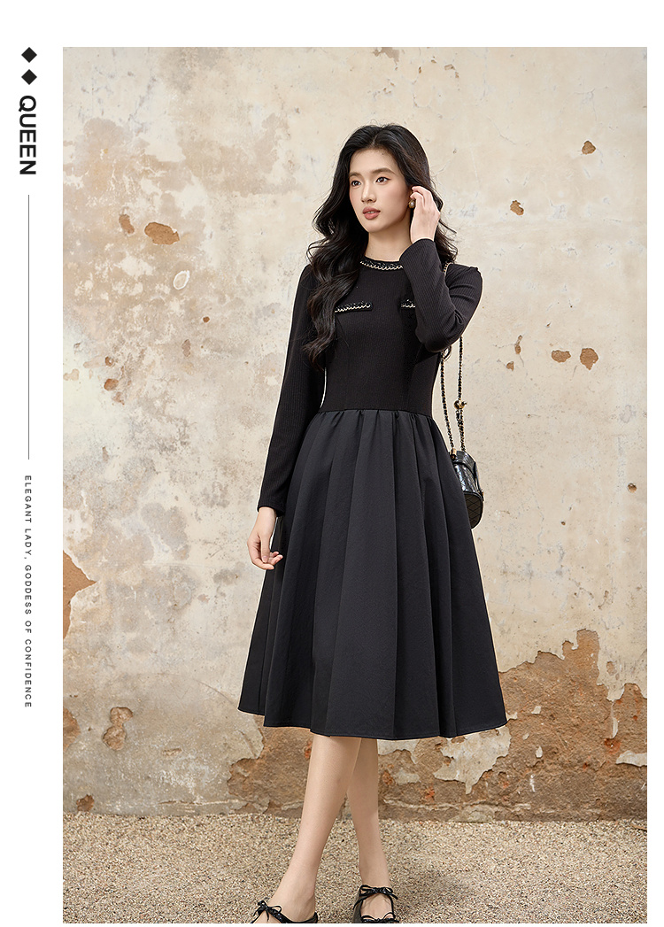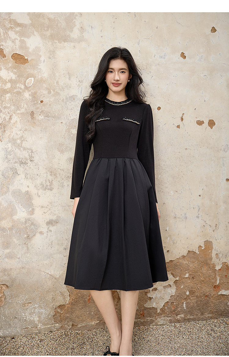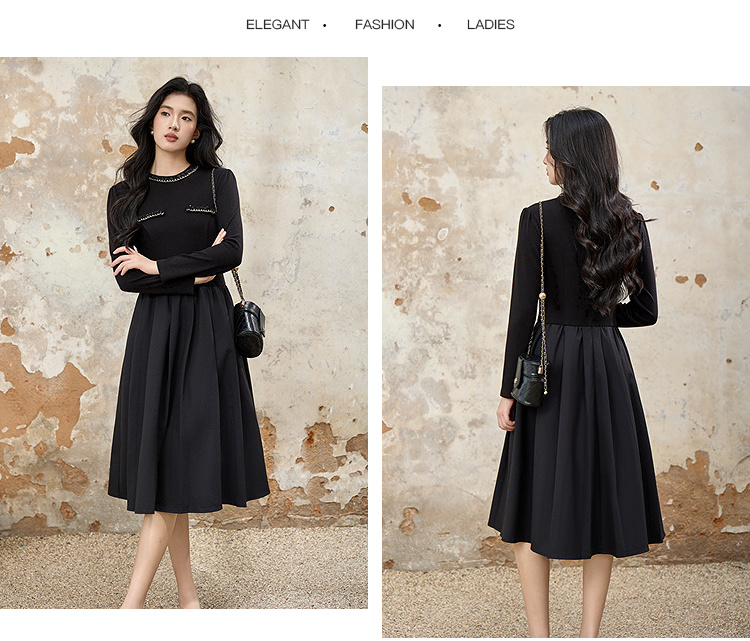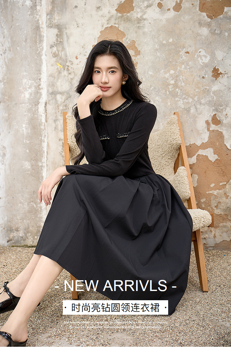 奢姿大码女装2025秋季时尚减龄亮钻装饰连衣裙胖妹妹气质优雅裙子