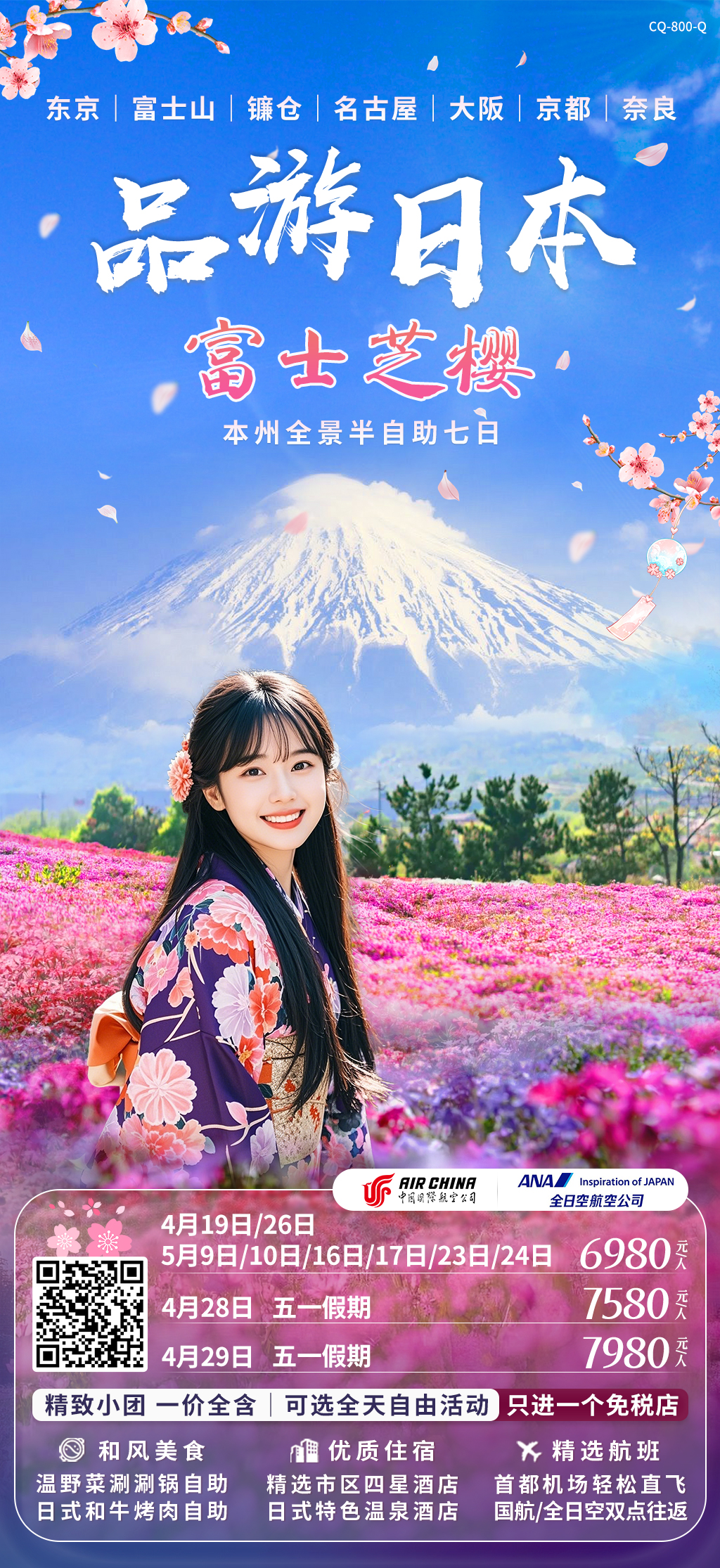 【北京出发】品游日本富士芝樱 东京富士山镰仓京都奈良大阪